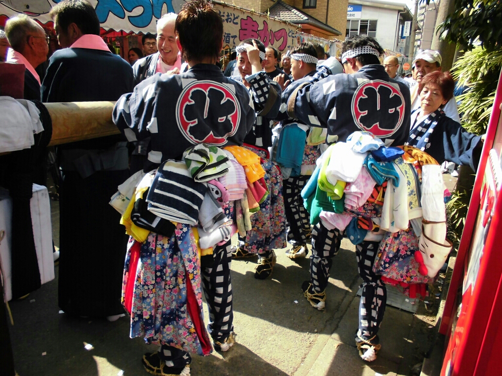 新楫さんは沢山のタオルを腰に付けています。