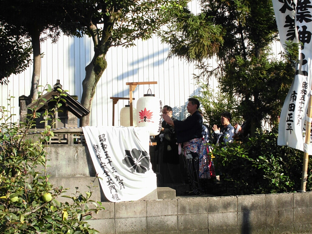 愛宕神社前では夜宮に備えて、提燈が取り付けられていました。