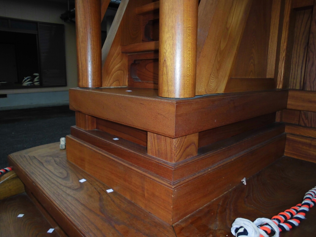 水引幕を用いないこの祭車ですが、忠実に再現されているので水引幕を付けられる溝があります!