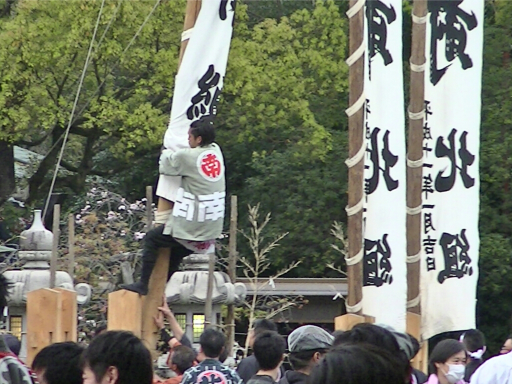 住吉神社に最後の宮入りをした後、皆で幟を寝かせて祭りは終わりを迎えます。