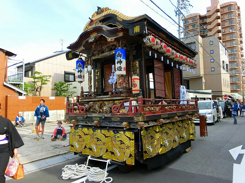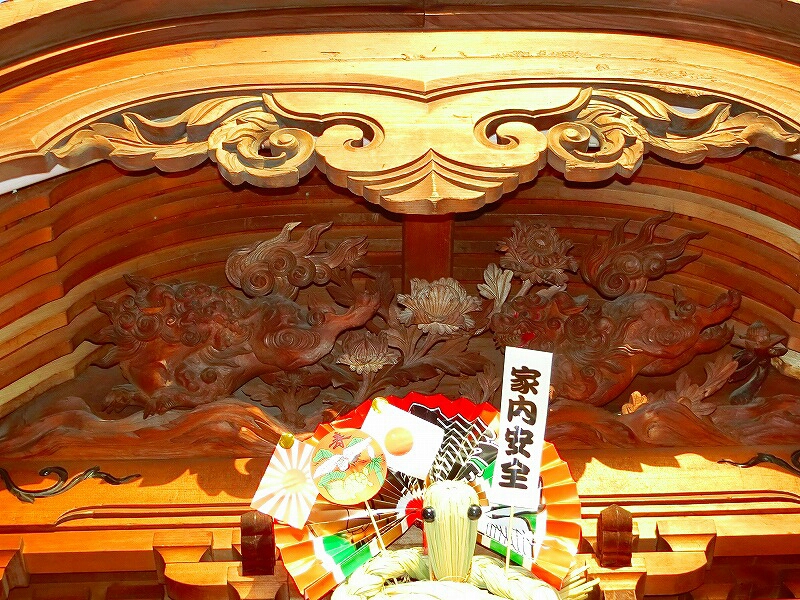 この神明宮のお祭りで曳かれる山車は、二層の山車を一層に改造したものや、独自に作られたもの、装飾や足回りも全て違い、見比べるのも面白いところです。
