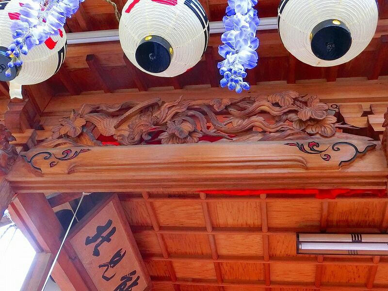 元は明治初期に建造された二層の山車で、電線が引かれた関係で高さに制限がされ、大正6年に現在の一層式に改造されました。