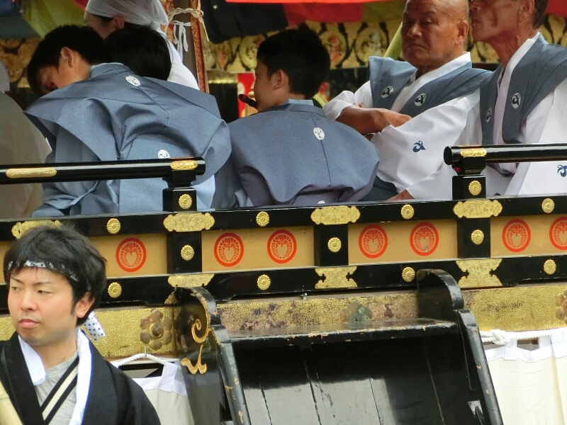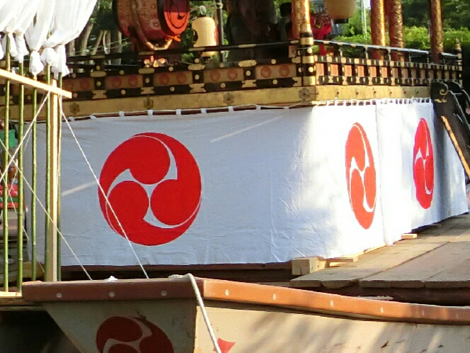 屋台下幕も木瓜紋ではなく、三ッ巴紋です。