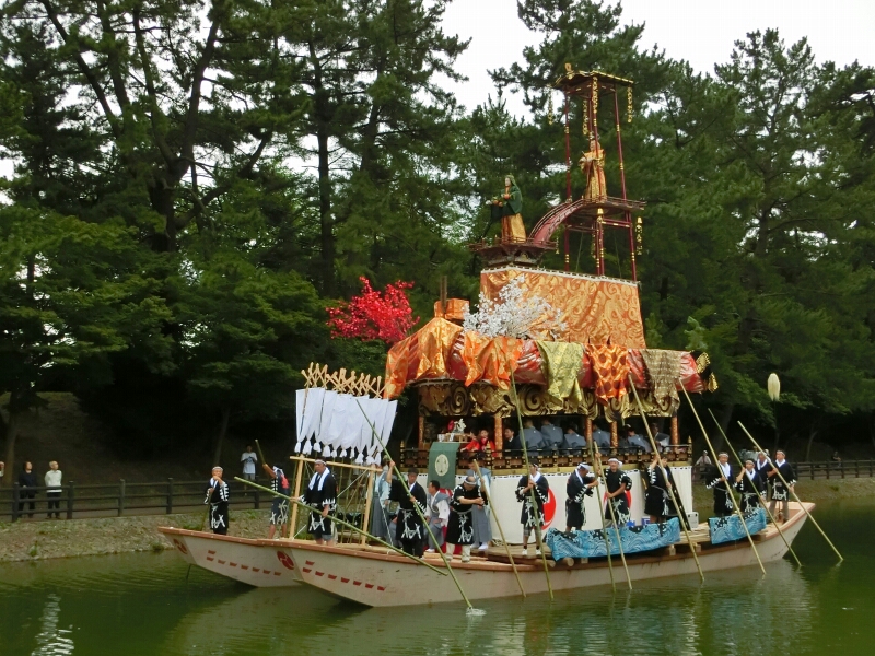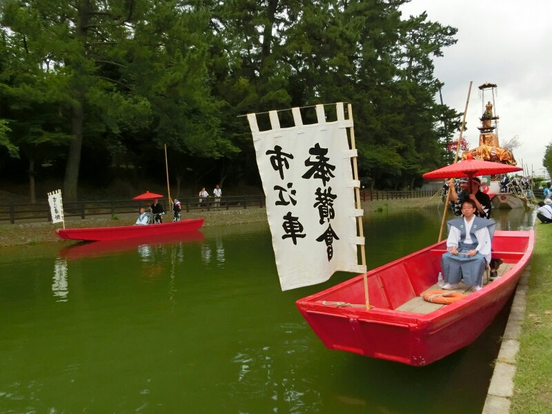 8時40分、御旅所より赤船に乗った神職が、市江車へ挨拶に来ます。