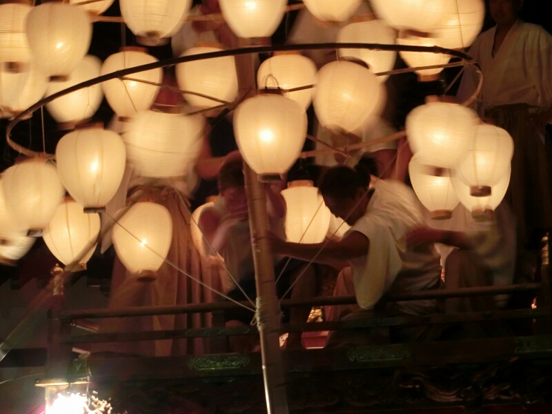 梵天(提燈)に火が入れられているところでした。