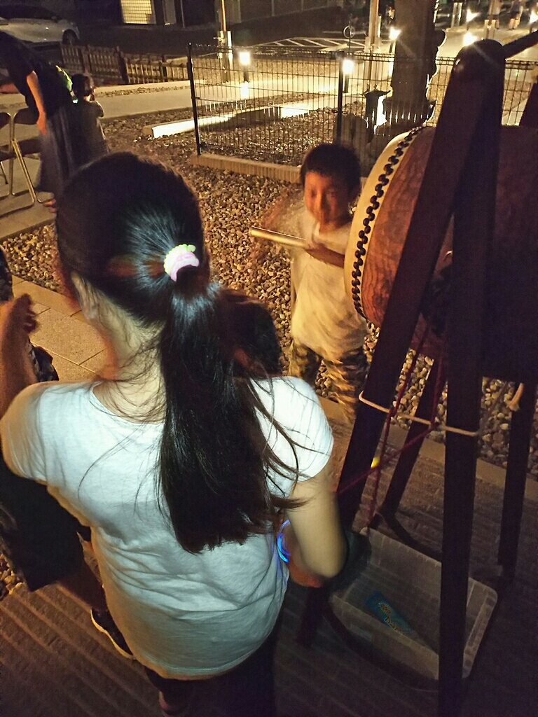 本堂の外では、子供たちが叩いて楽しんでいます!