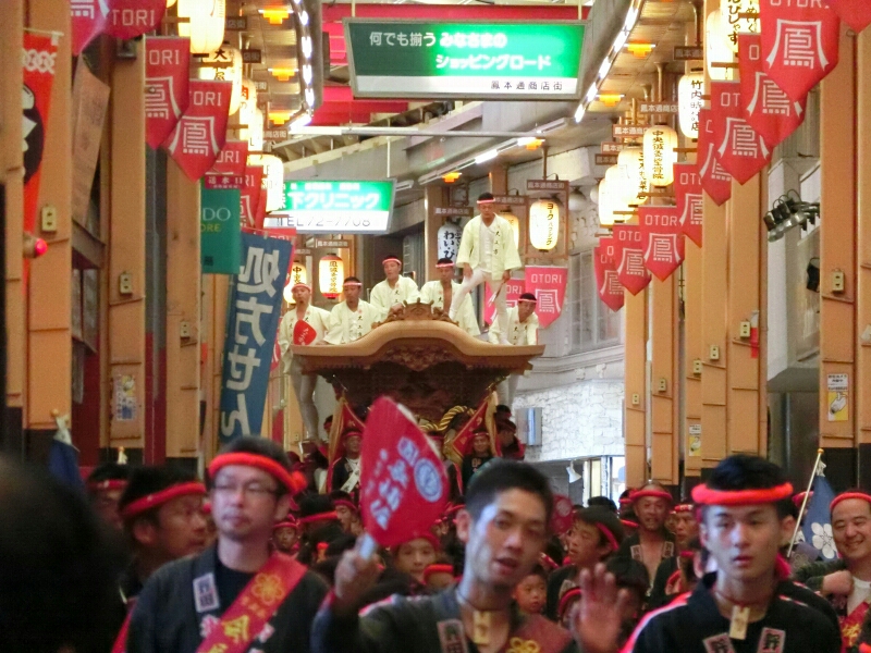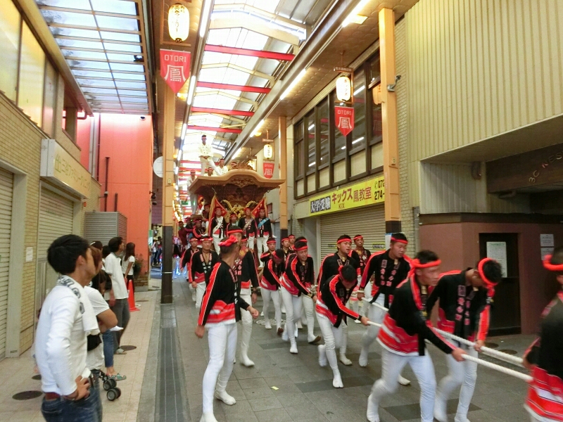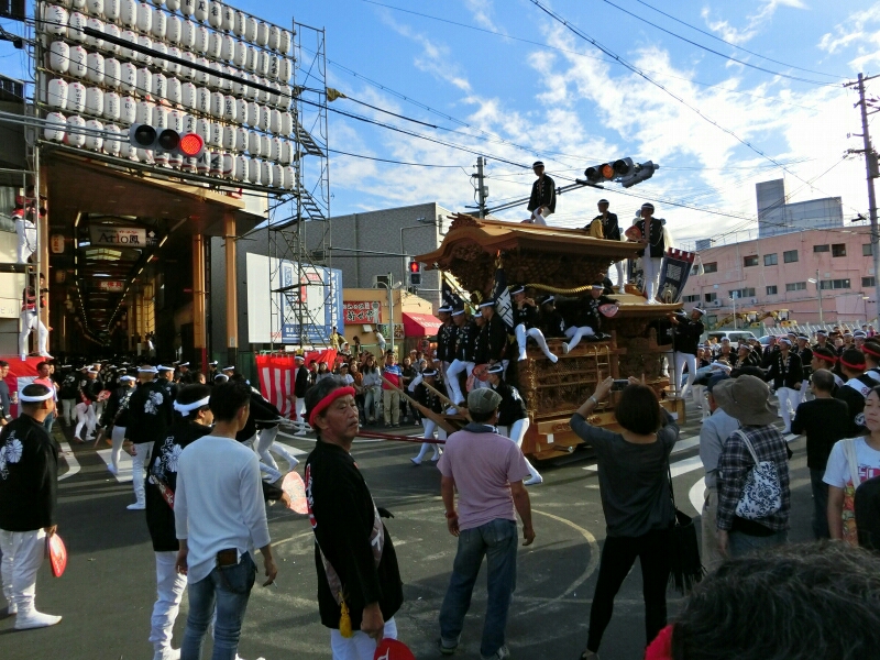 鳳商店街を疾走してきただんじりが見られました。