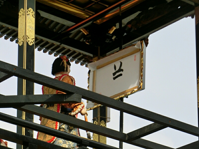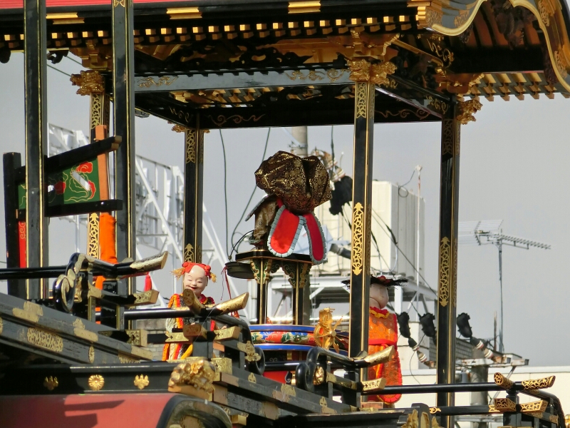 からくり人形は、唐子が肩車倒立して神楽鈴を振るものです。