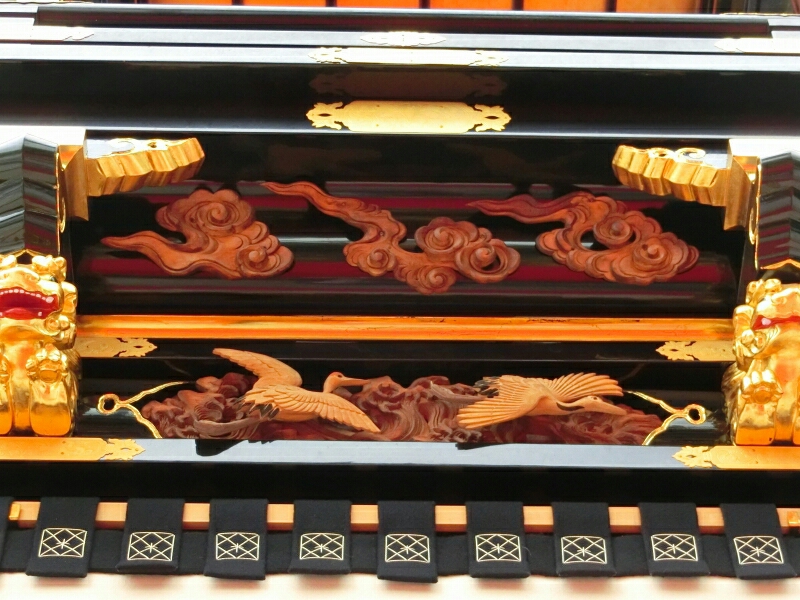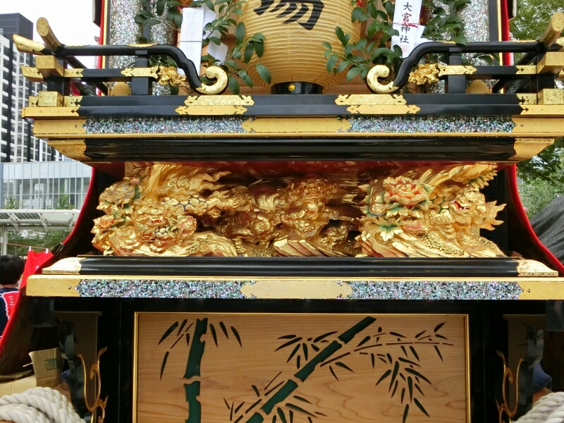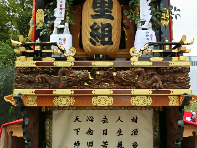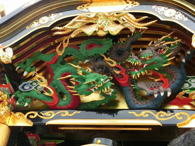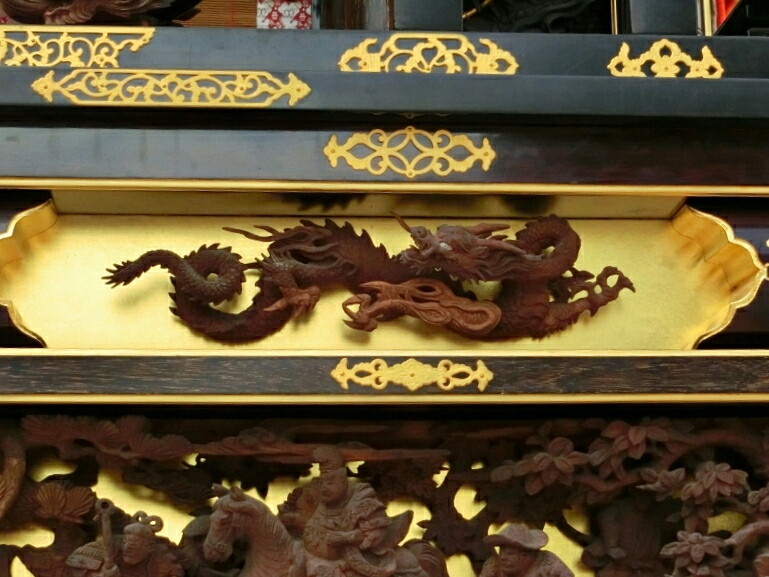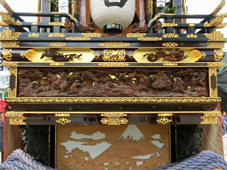 市場組の山車は、様々な技法を用いた彫刻が見られます。