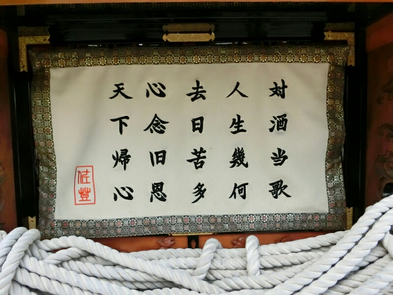 蹴込みは中国 曹操の漢詩を刺繍したものです。
