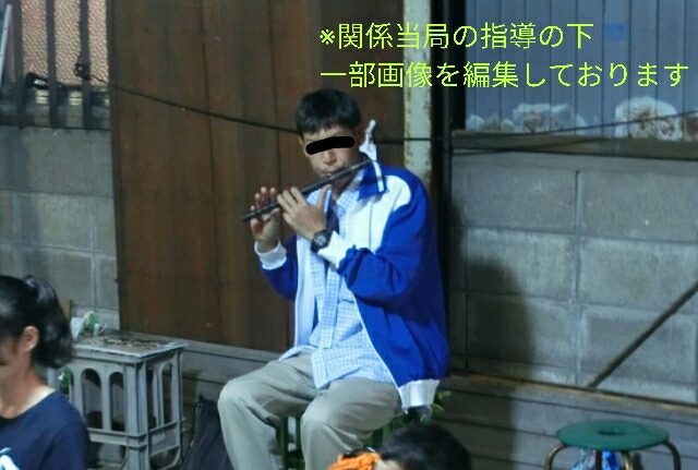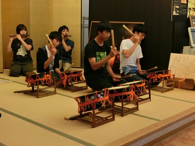 体験会の後の余興として、お隣町の麩屋町の皆さんによる囃子実演。