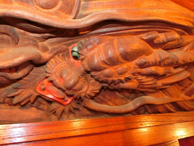 亀腹の龍は下から見る事を考えた彫り方。