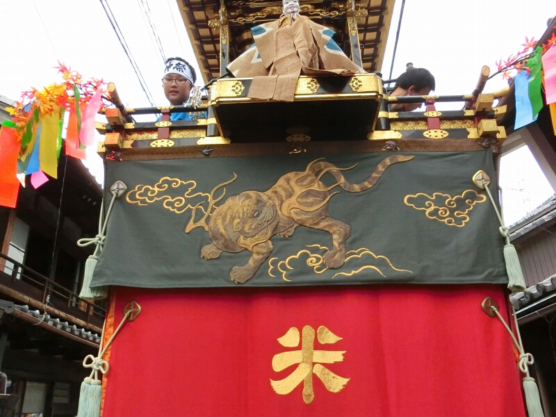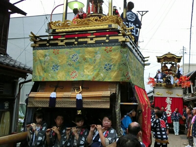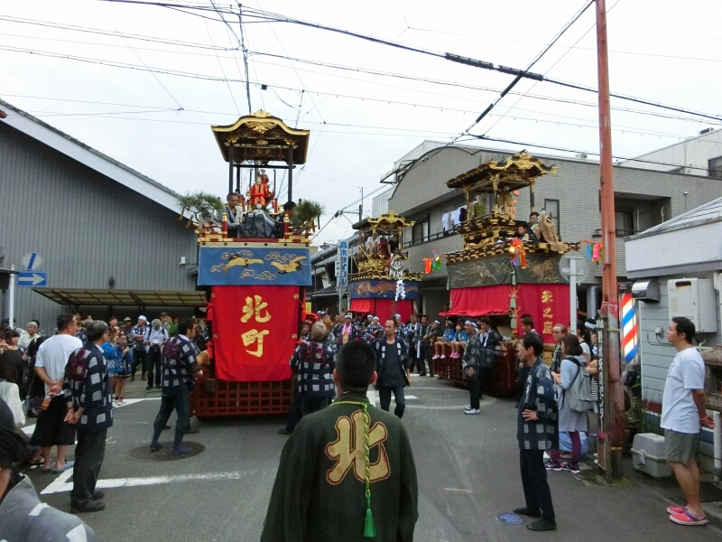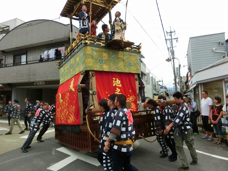 北町の奉納中に池之堂 池町車は南進します。