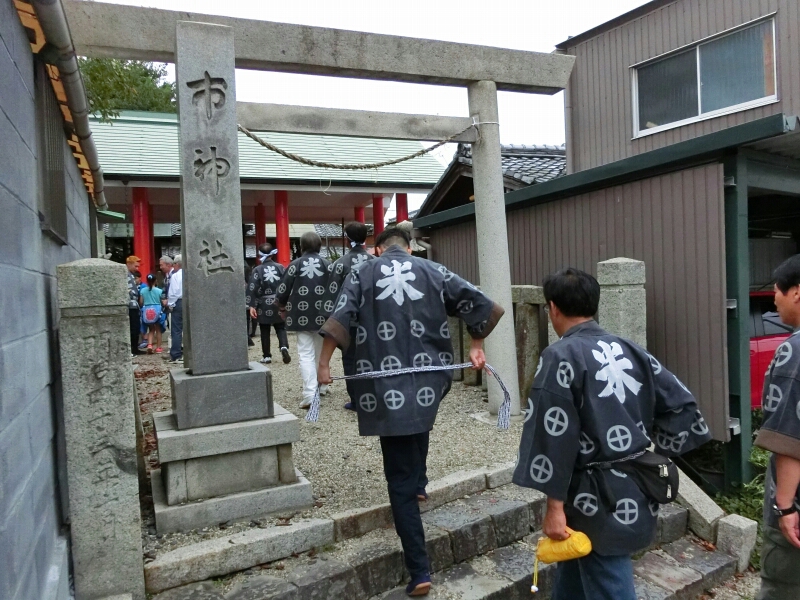 市神社では各町の皆さんが参拝していました。