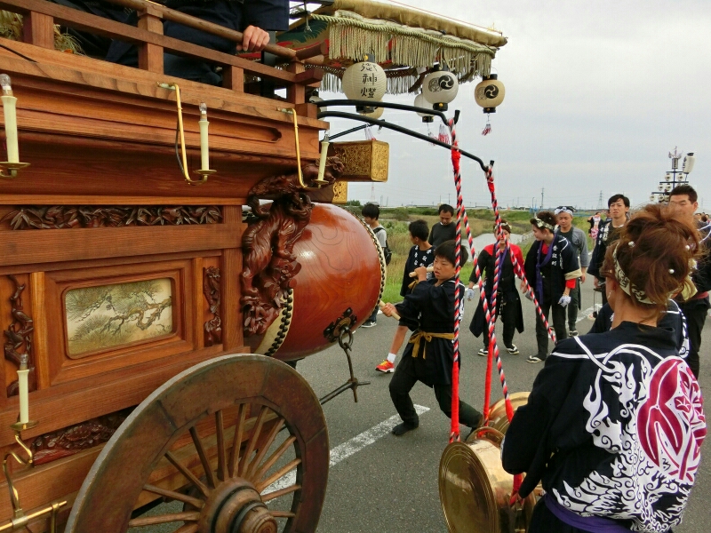 午後2時、一本松の辺りから上之郷祭車が見えてきました。