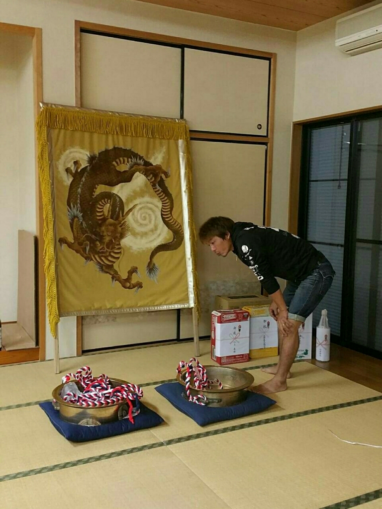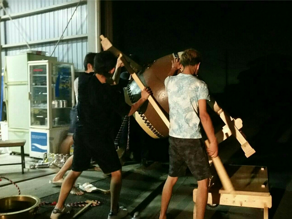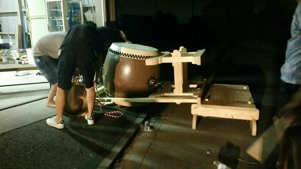 お祓いが済んでいないので、この太鼓を使わずに練習台での叩き出しです。
