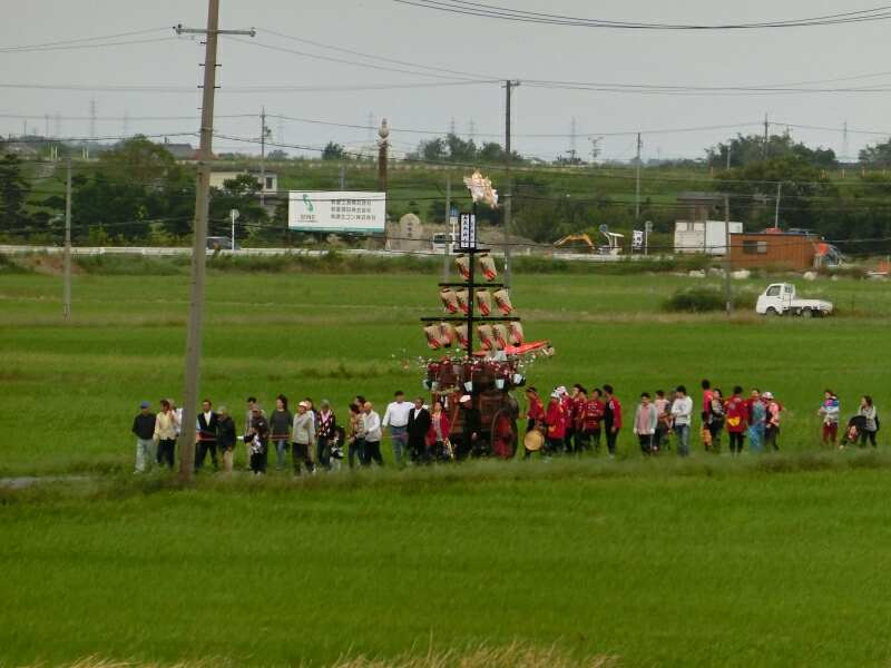 田んぼの中を東福永祭車が来ました。