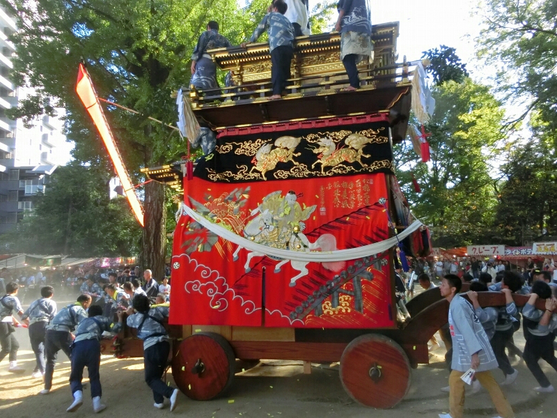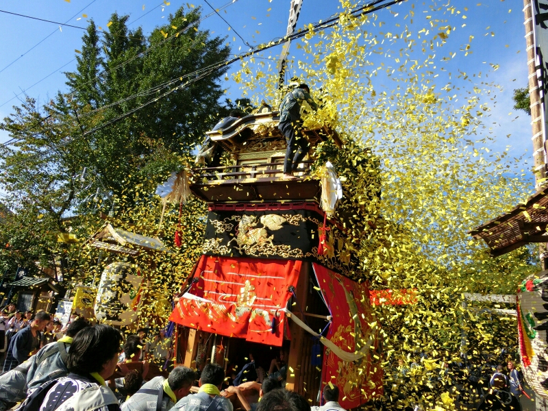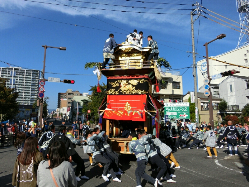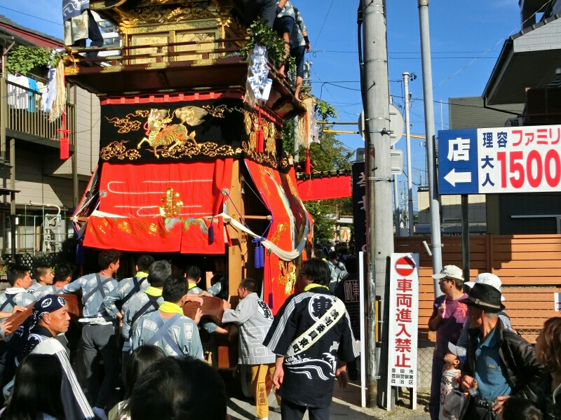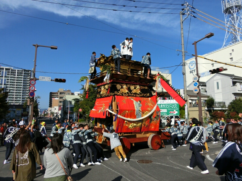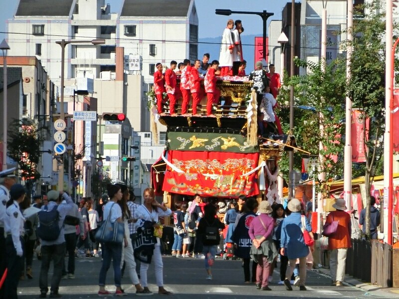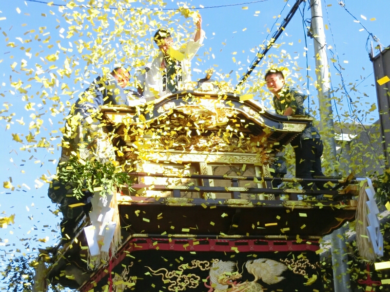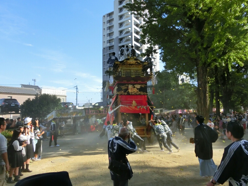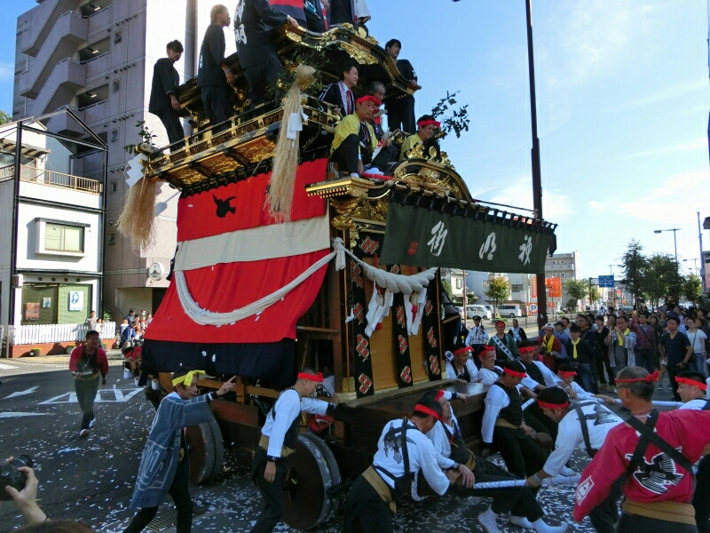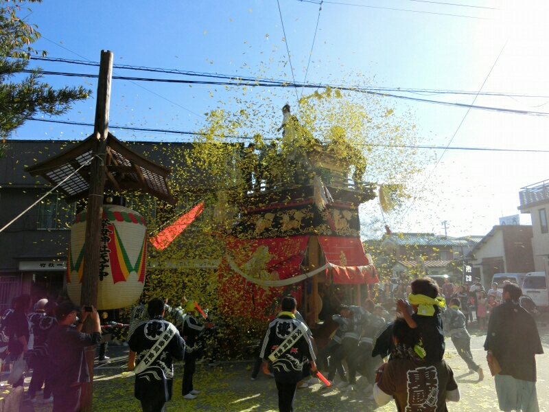 試楽に下町地区から少し南へ移動すると、旧東町の山車に遭遇できると思いますよ!