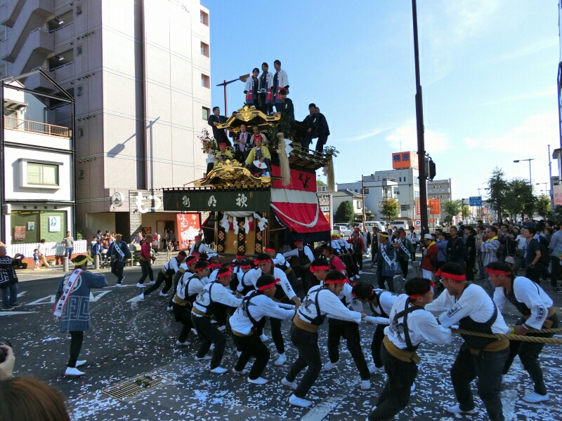 豊田市駅前から下町地区の山車についていきます。