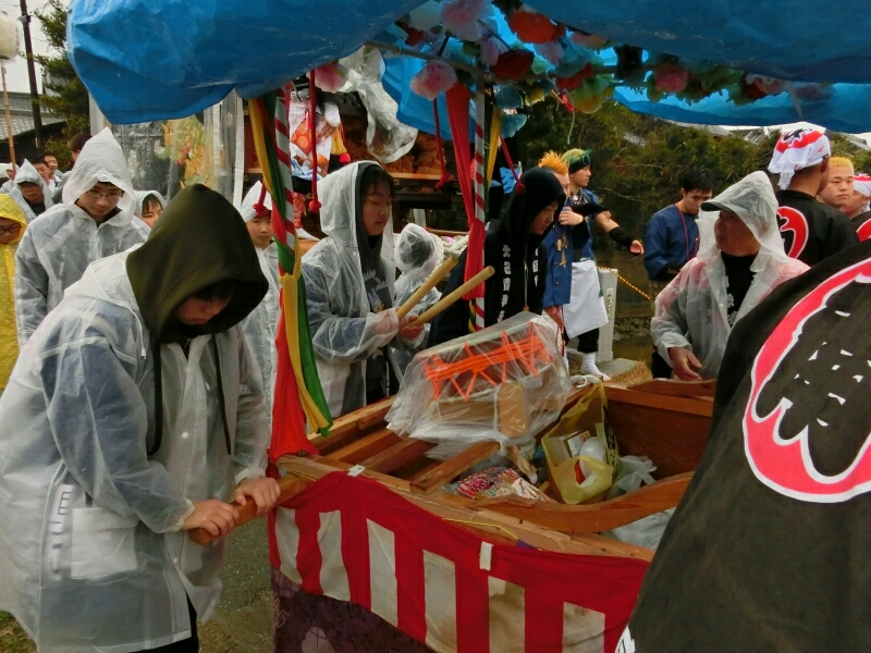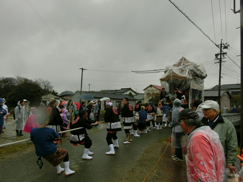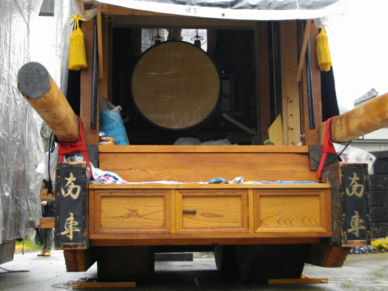以前、雨の時は山車曳きが中止でしたが、今後は雨でも曳くそうです。