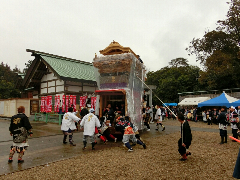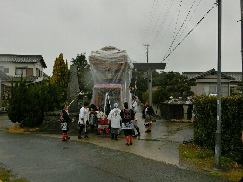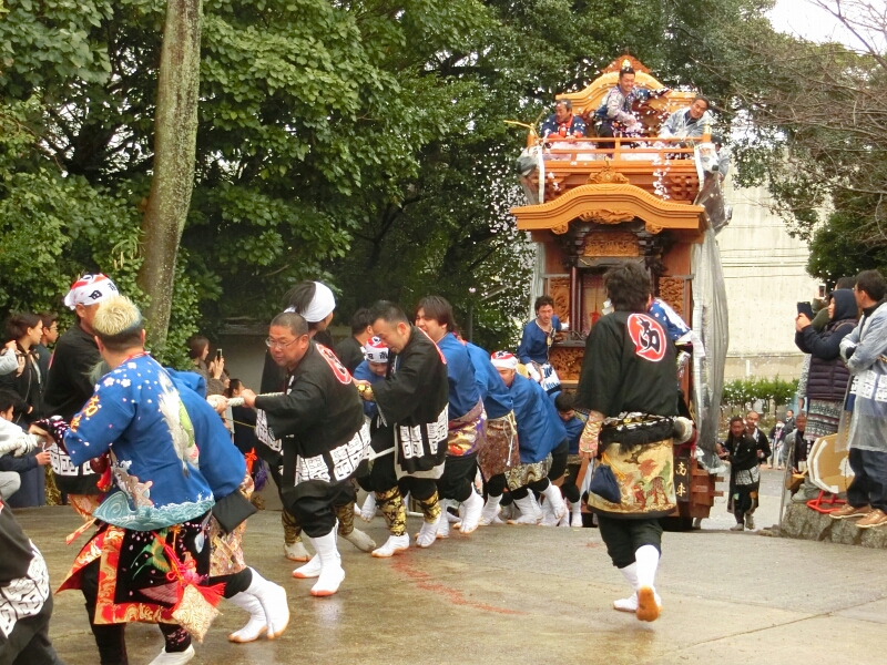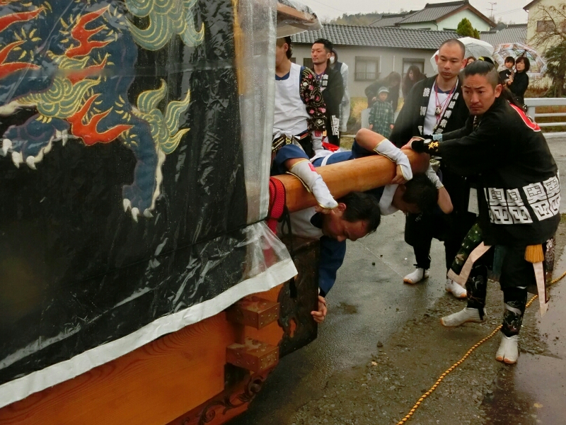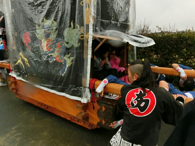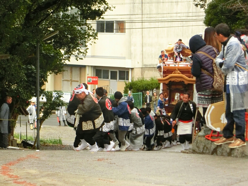 大雨の際は山車の坂上げは行わず、坂下に置く事もあるようです。