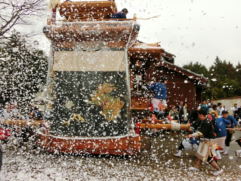 山車が駆け上がって来たら、目の前が見えなくなるほどの紙吹雪!