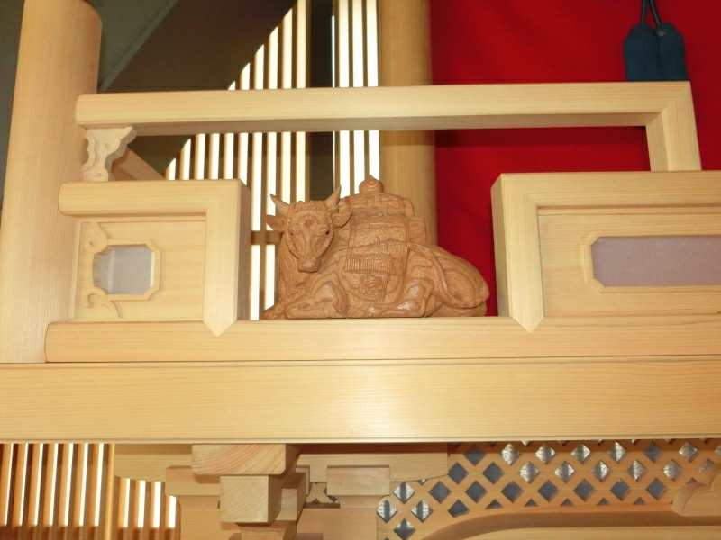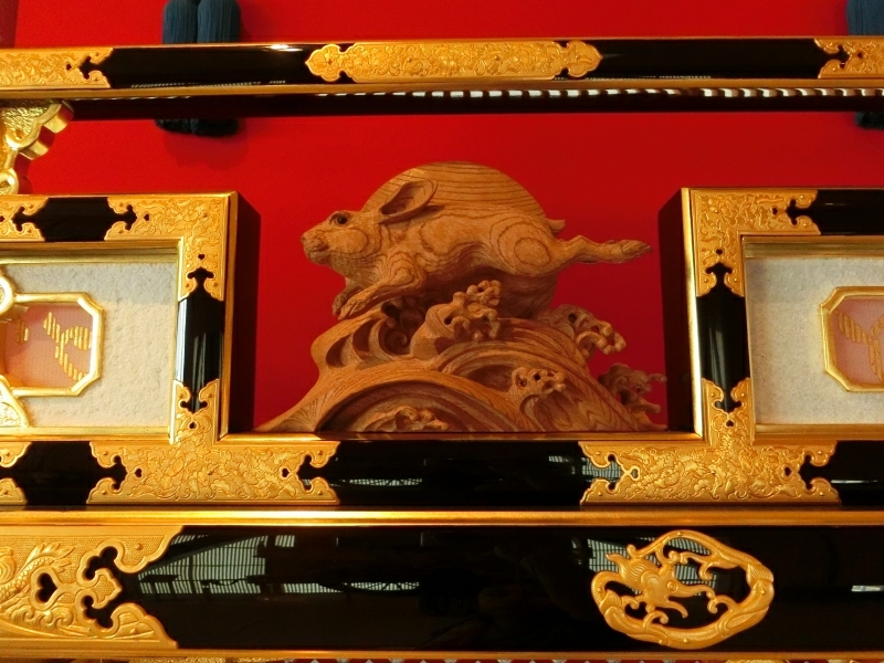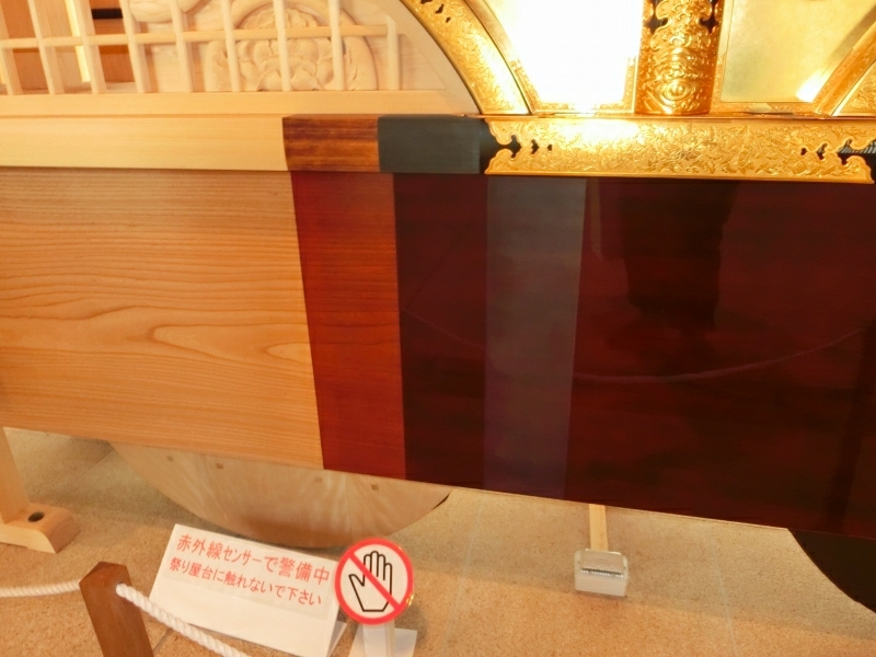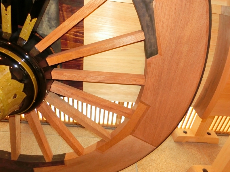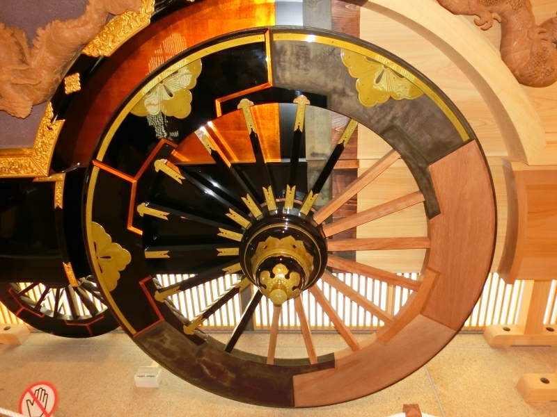 御所車が素木、下塗り、上塗りに塗り分けられています。