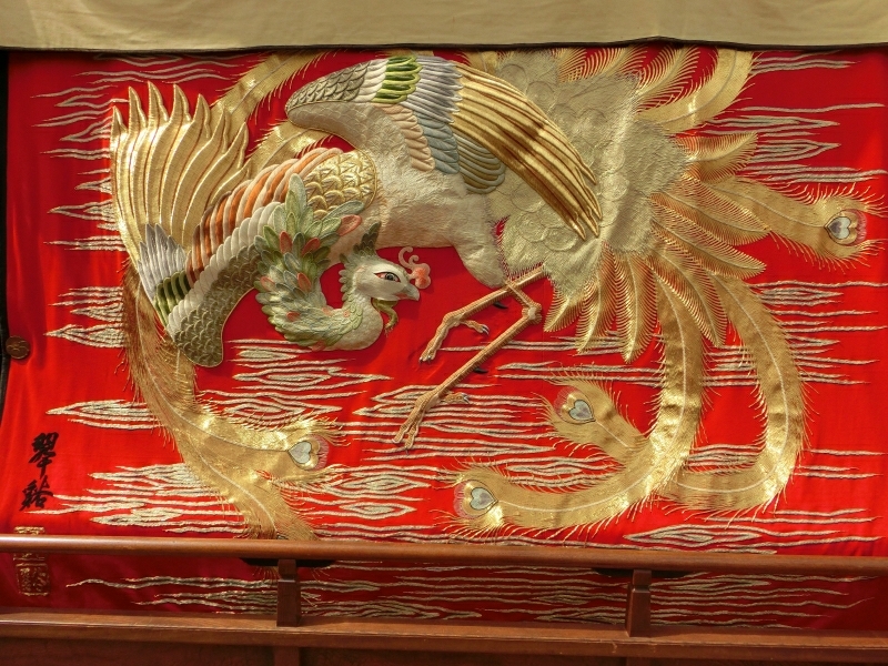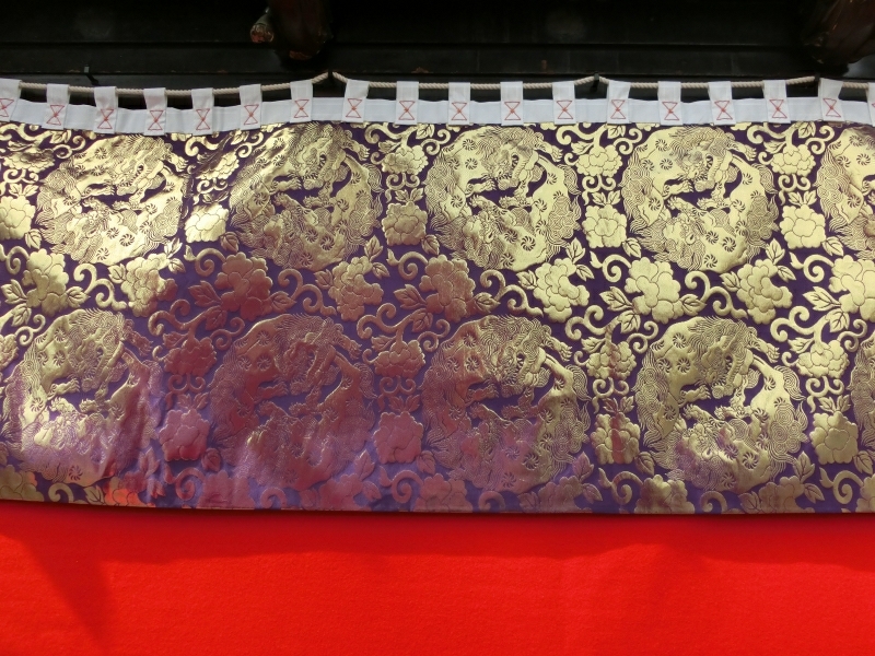 水引幕は唐獅子の連続模様。