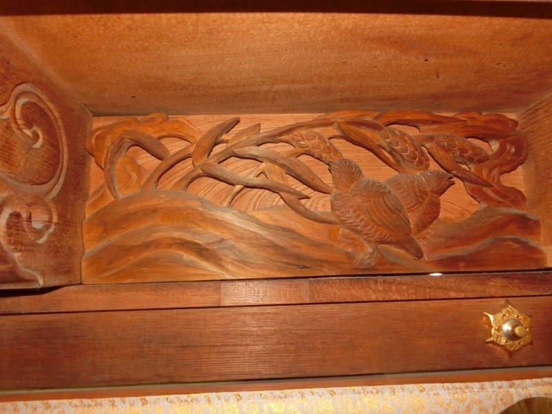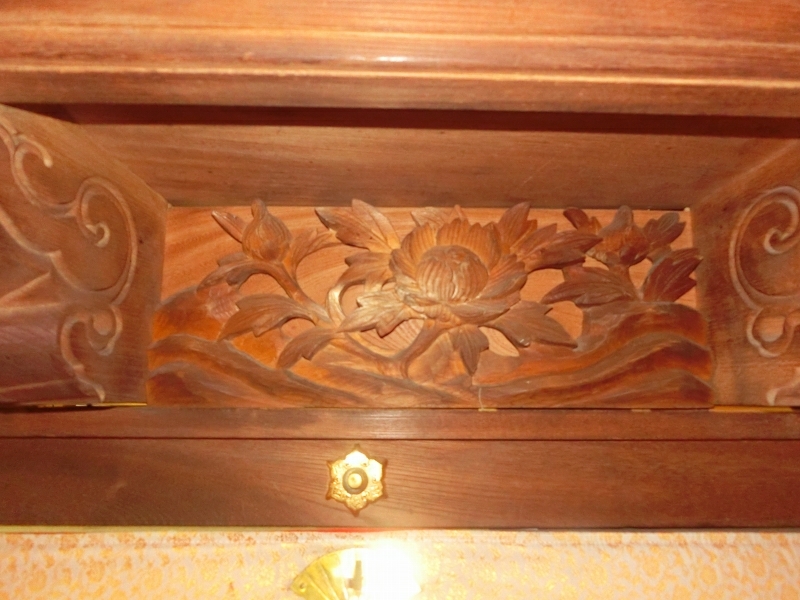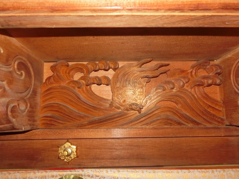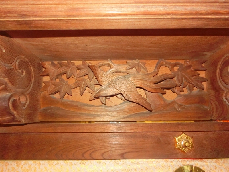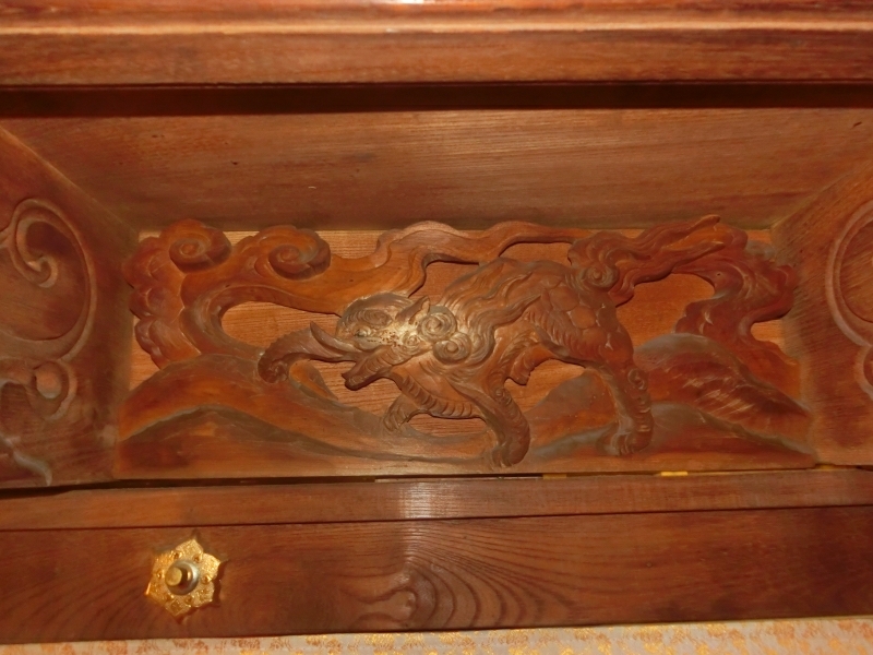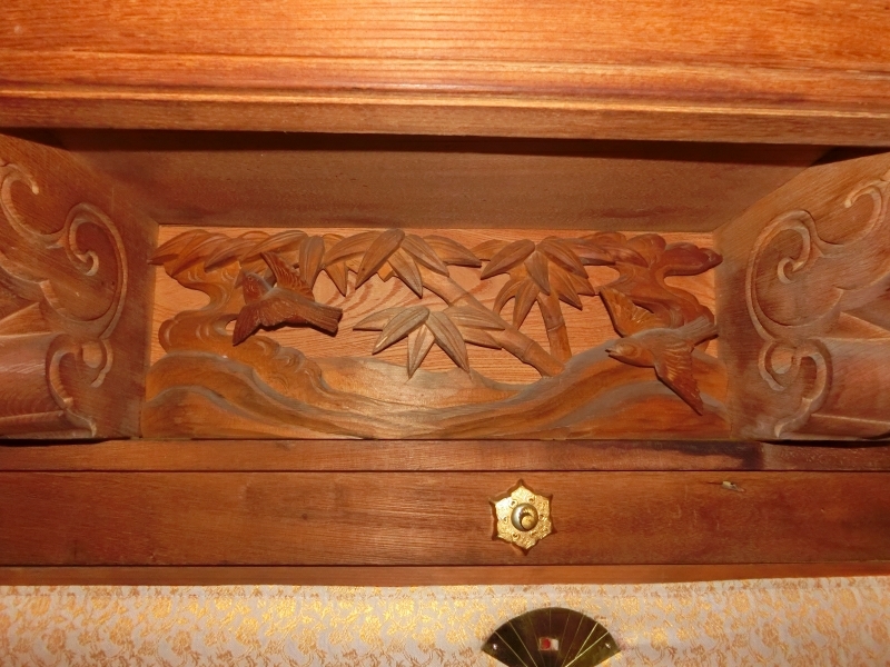 正面下部は御簾になっており、各部に彫刻が入っています。