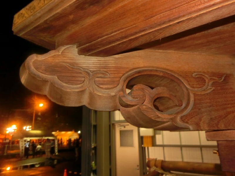 しかし、足回りなどの下部は楫棒や輪掛など名古屋型山車に似る点があり、大垣や竹鼻にも準ずる曳山と山車文化の中間地点と言える構造になっています。