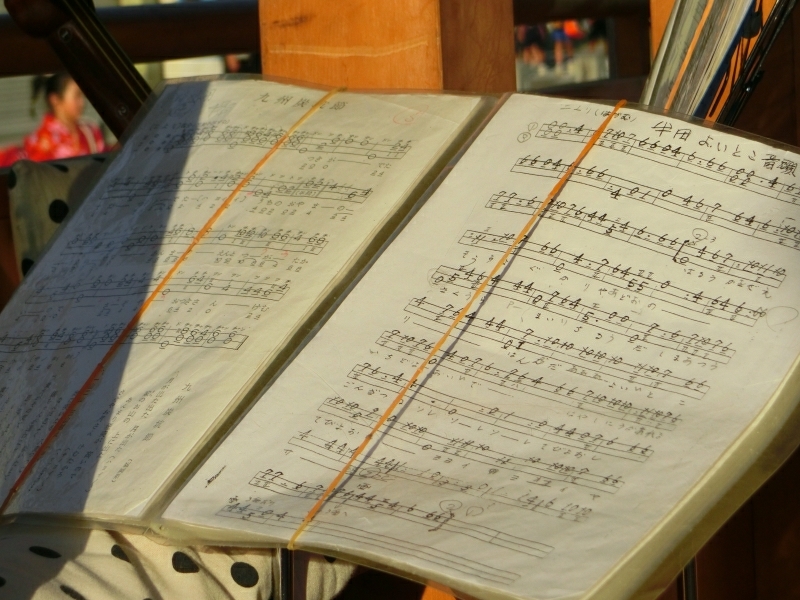 特徴的な楽譜は三味線の楽譜です