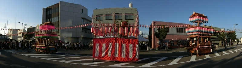 櫓越しに二台が並びます。