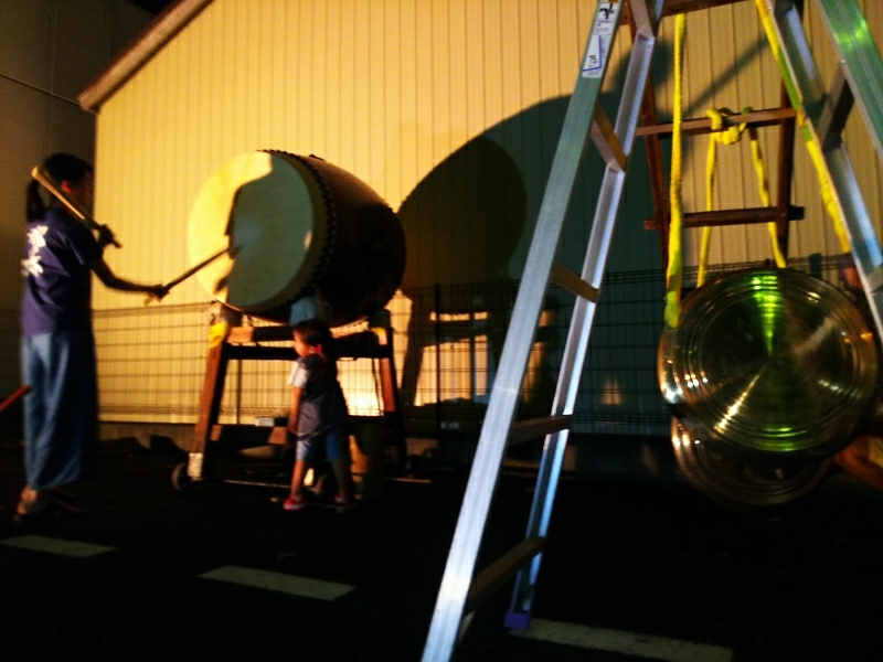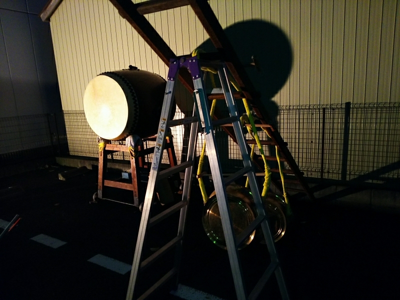 昨年同様、春日前で囃しても良かったのですが、御車祭の奏楽の稽古上げなので町内の駐車場で宴を張りました