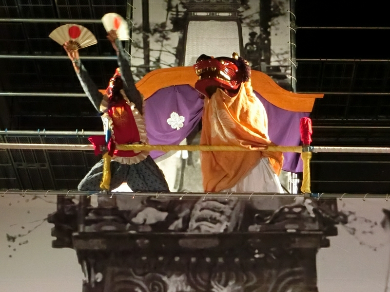 その後、大山車の高欄幅で昔行われていたように扇の舞が舞われました。