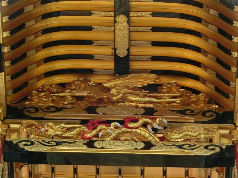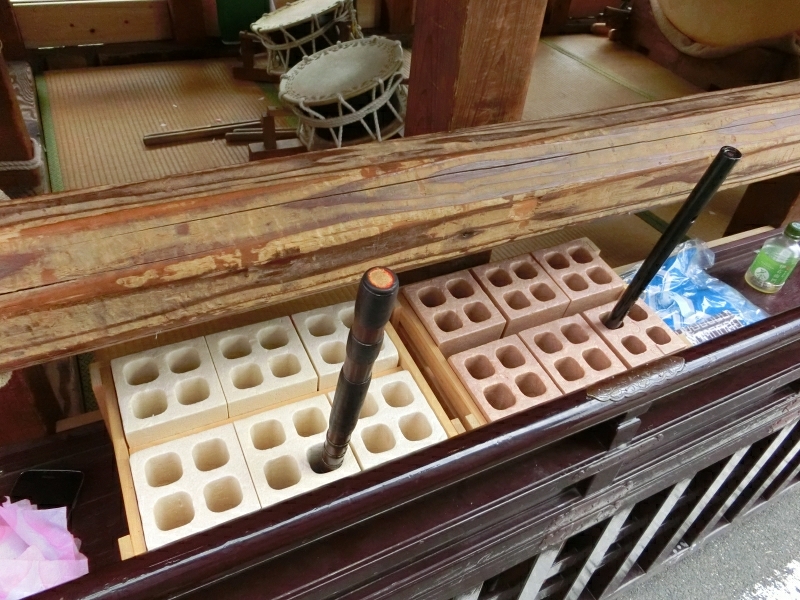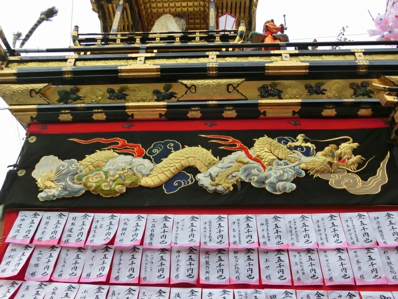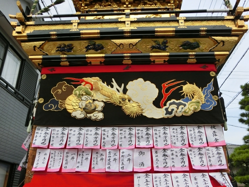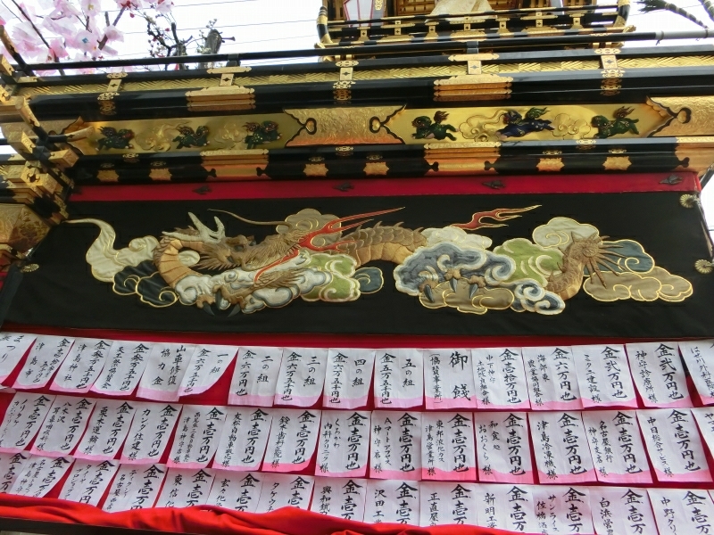 楫棒が前に向かって下がっているのは、後ろを上げないと山車蔵に入らないからだそうです。