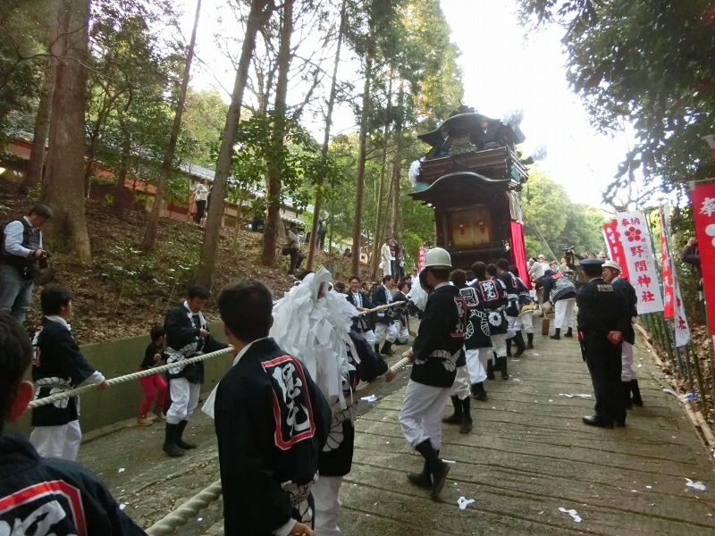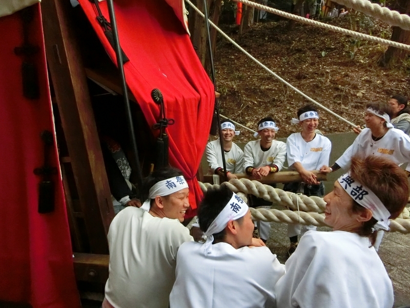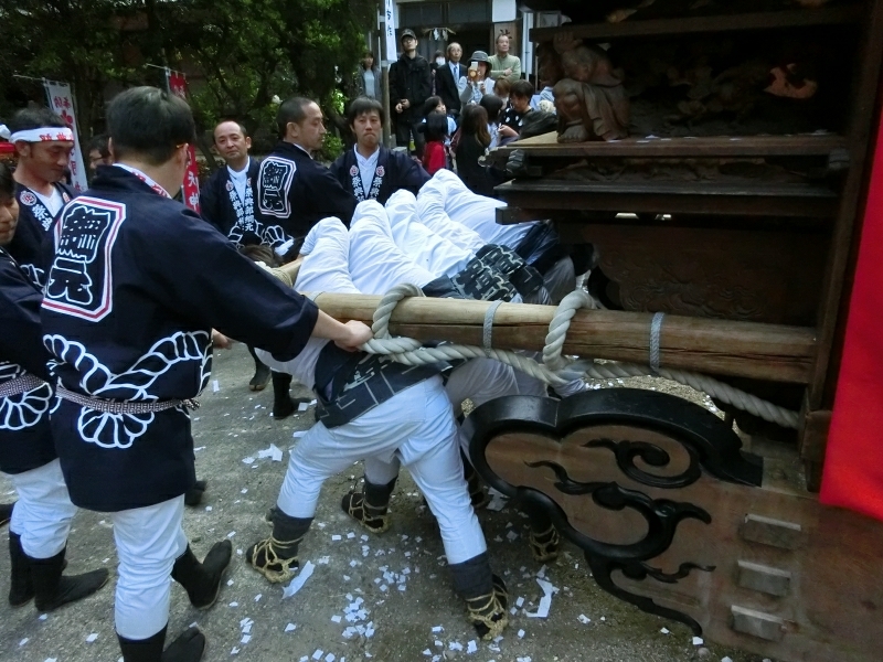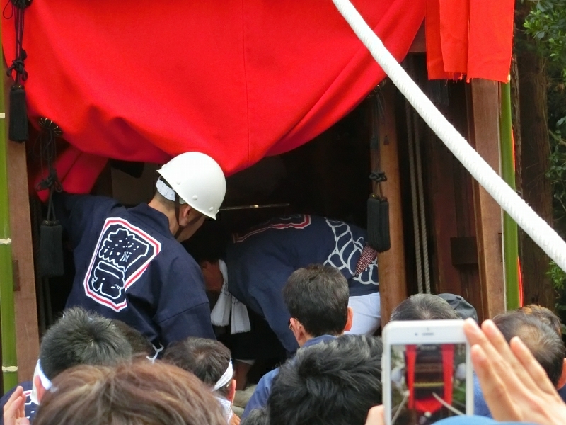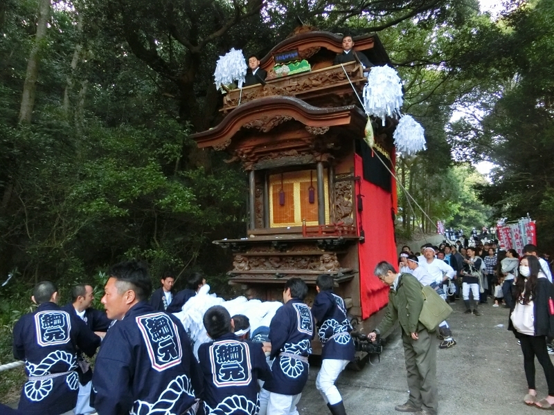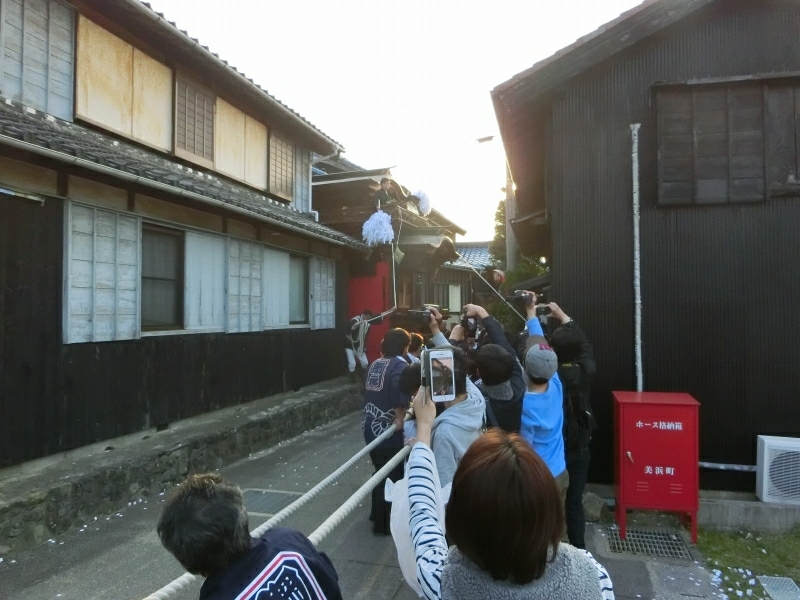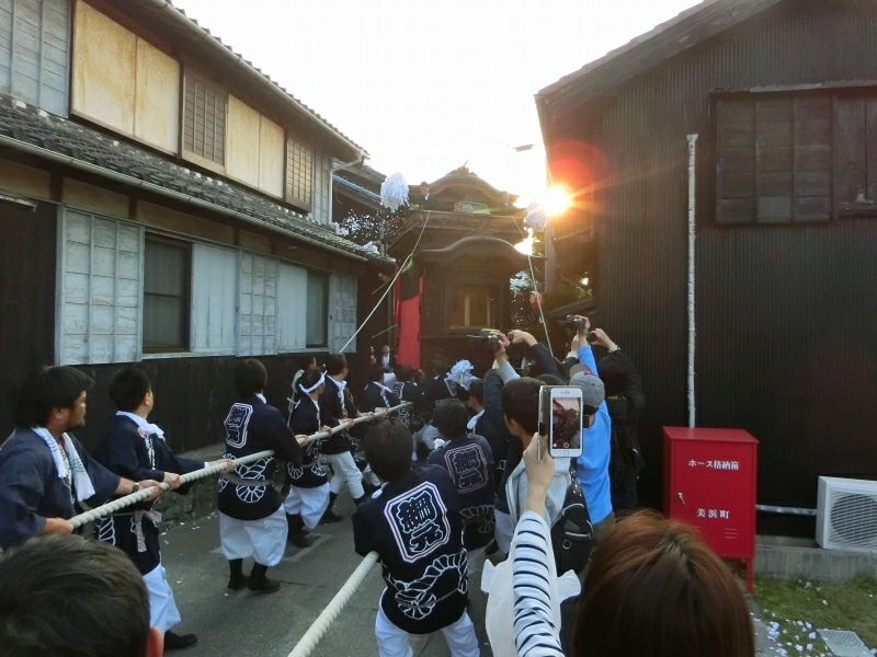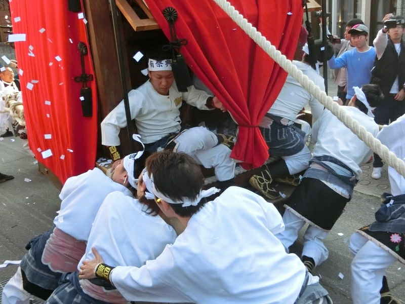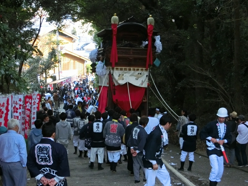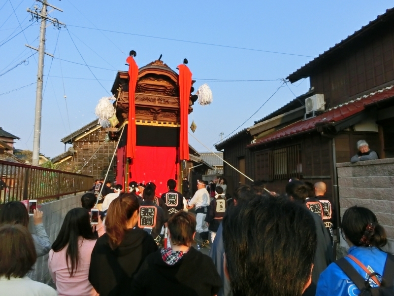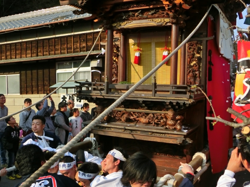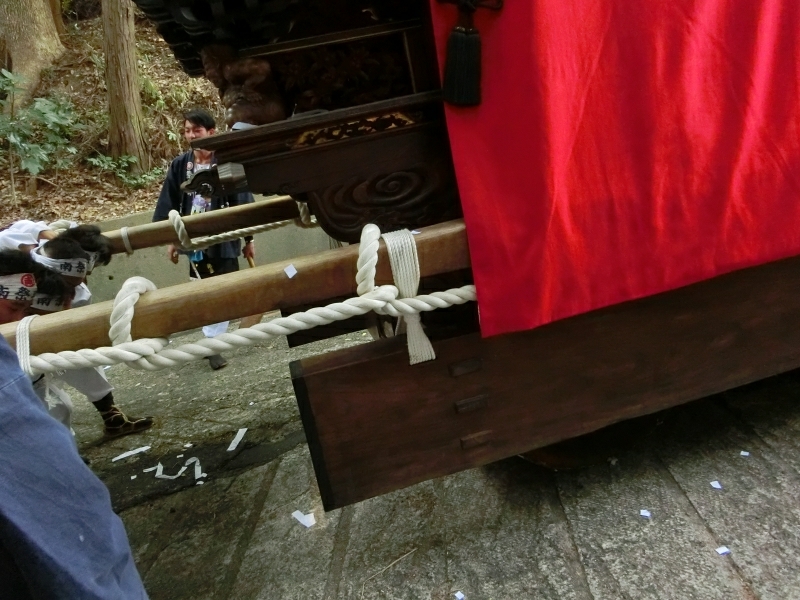 ちょうど坂下ろしの時間で、ゆっくりと山車が下りて来ます。