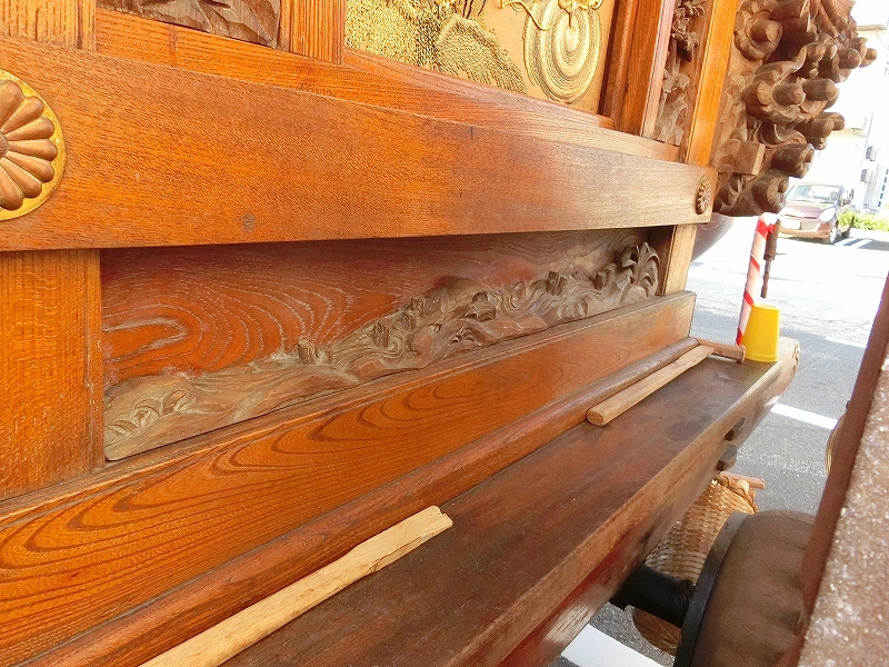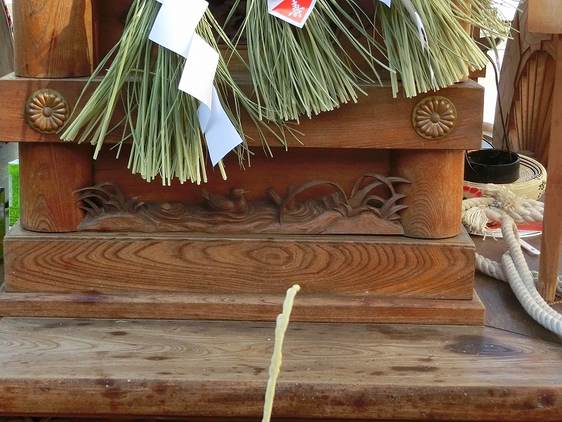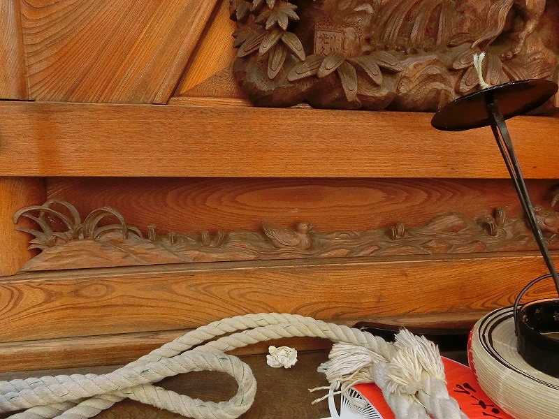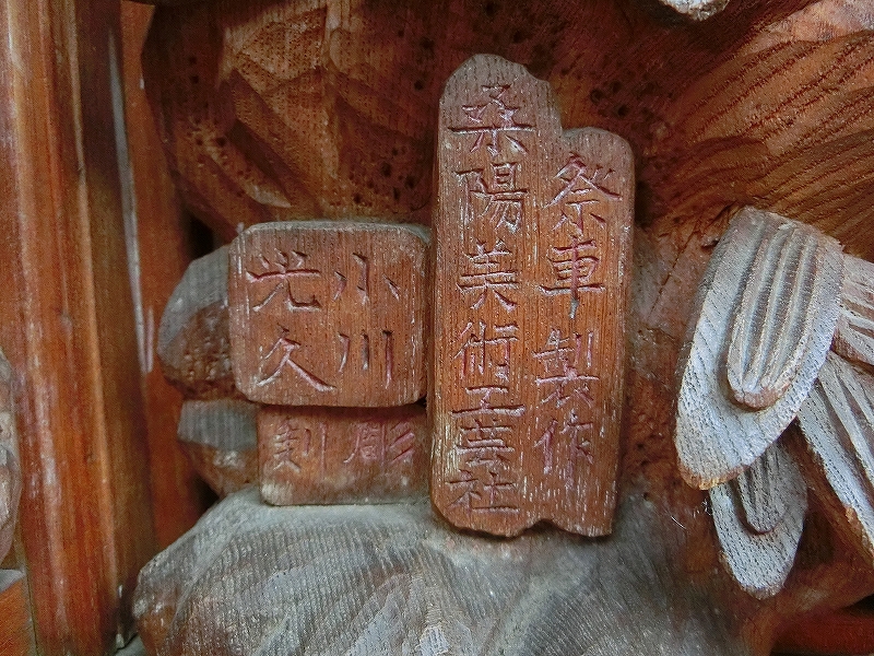 右側隅には、彫刻師小川光久の銘のほか、桑陽美術工芸社(棟梁大佐を始めとする職人集団)の銘があります。