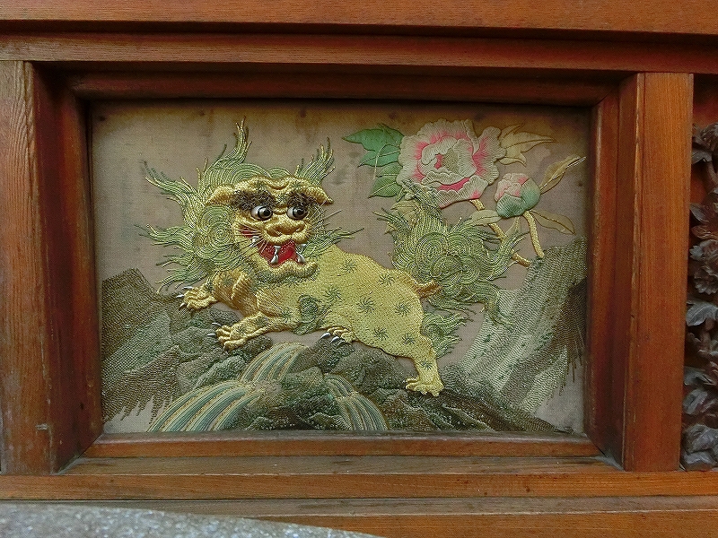 牡丹に唐獅子の刺繍です。