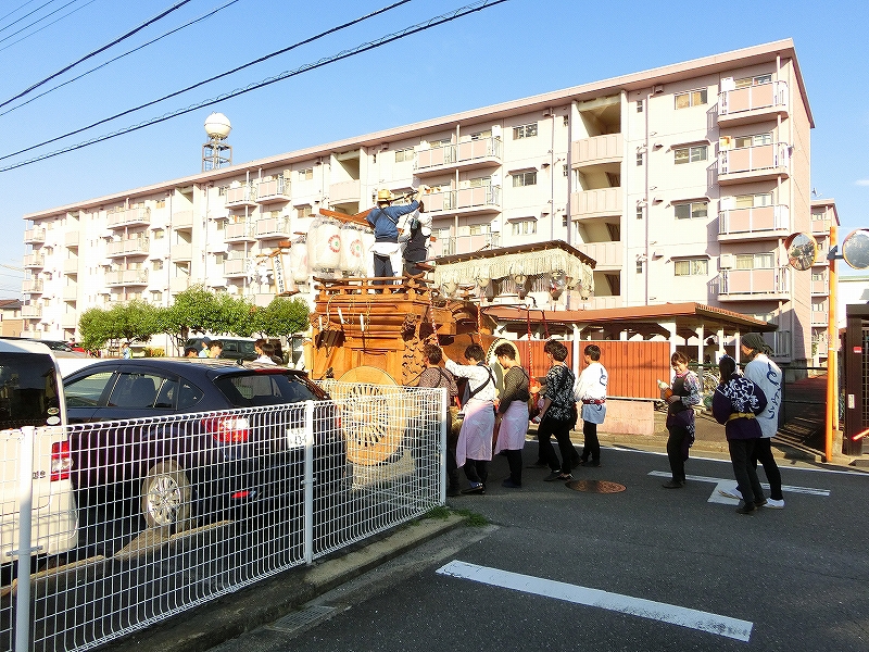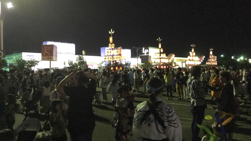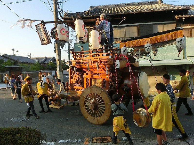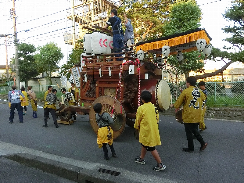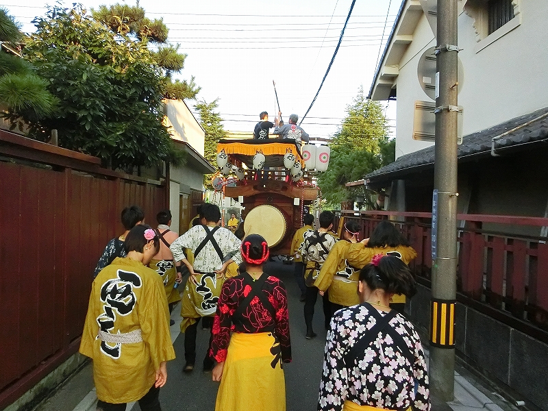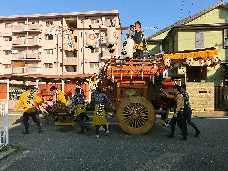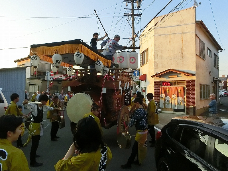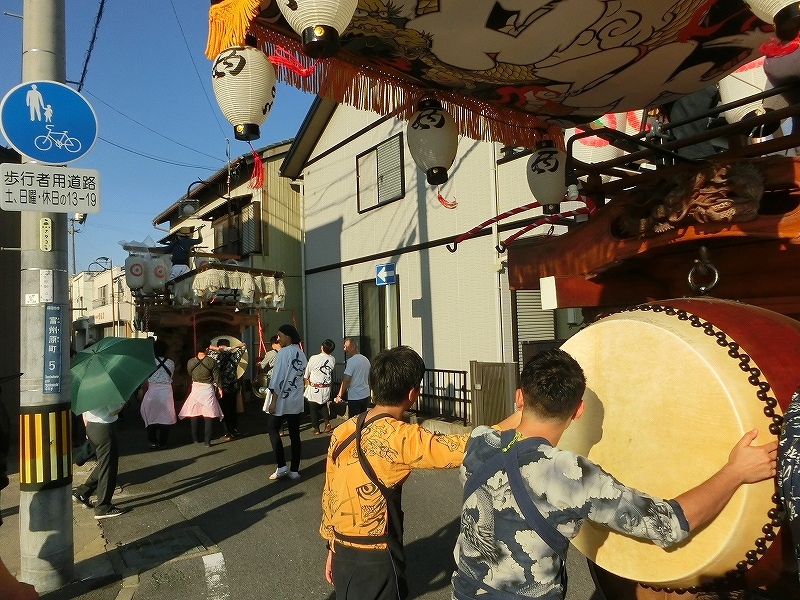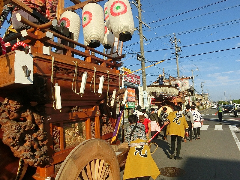 7/14 今年から祭車の移動時間を17時にした、西元町は隣町の東洋町祭車と共に町内へ向かいます。