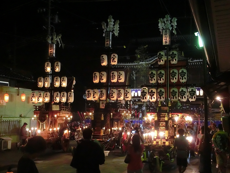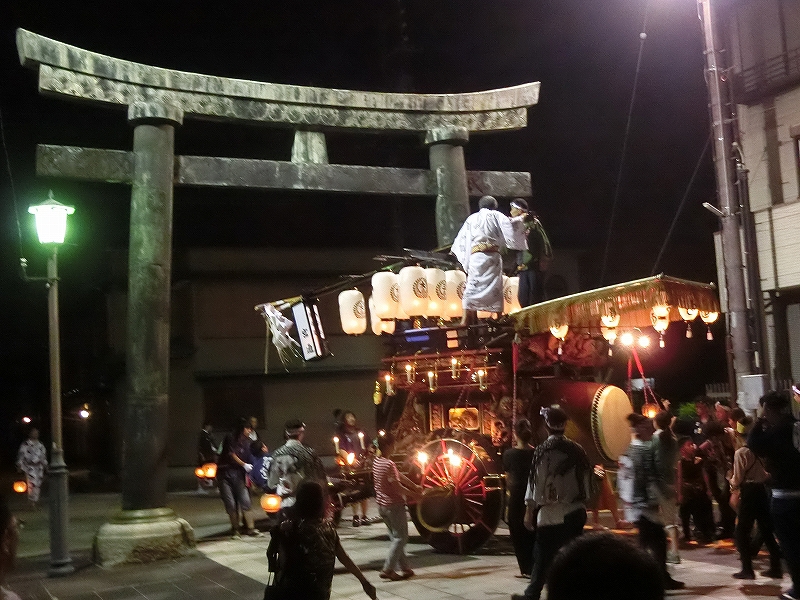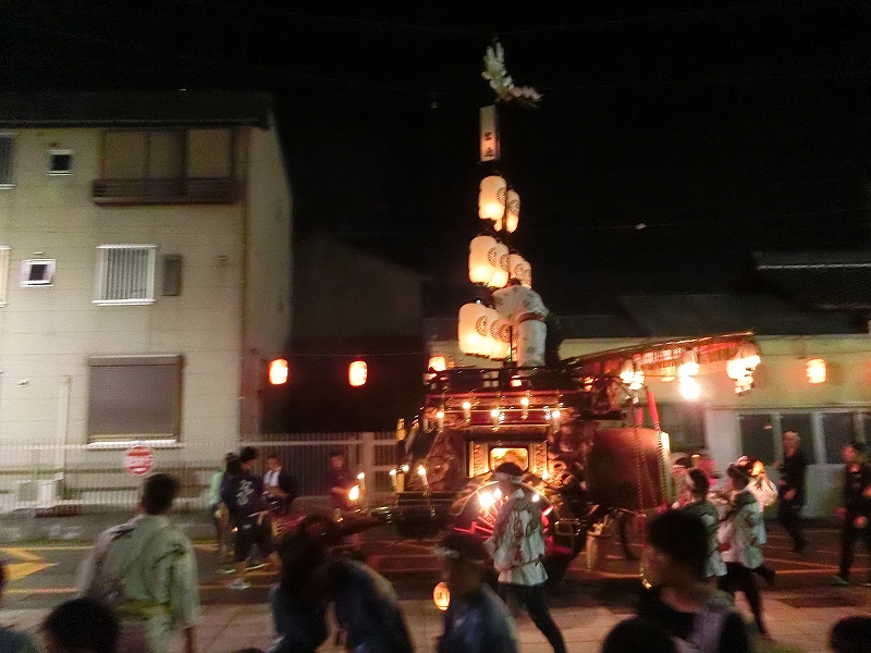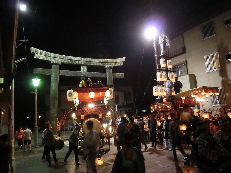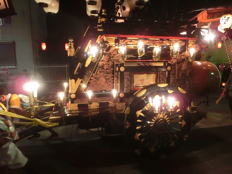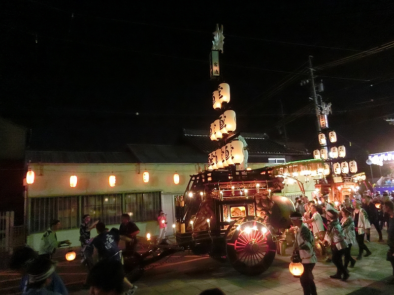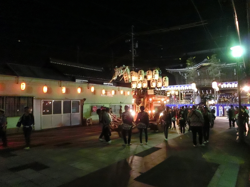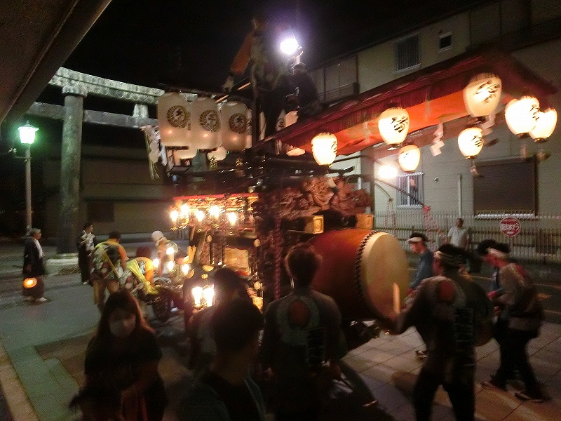 午後9時、八間通りに揃った各組祭車は、八間通りから引き上げ、組内練りに戻ります。