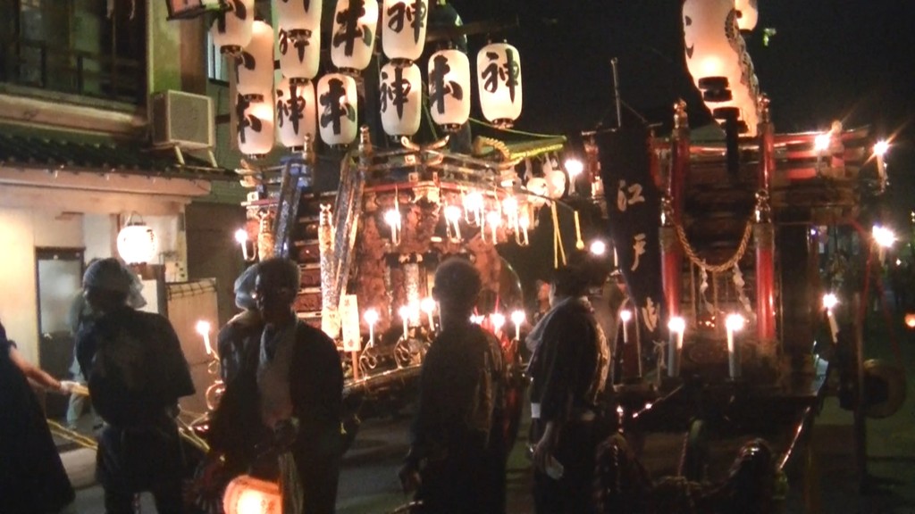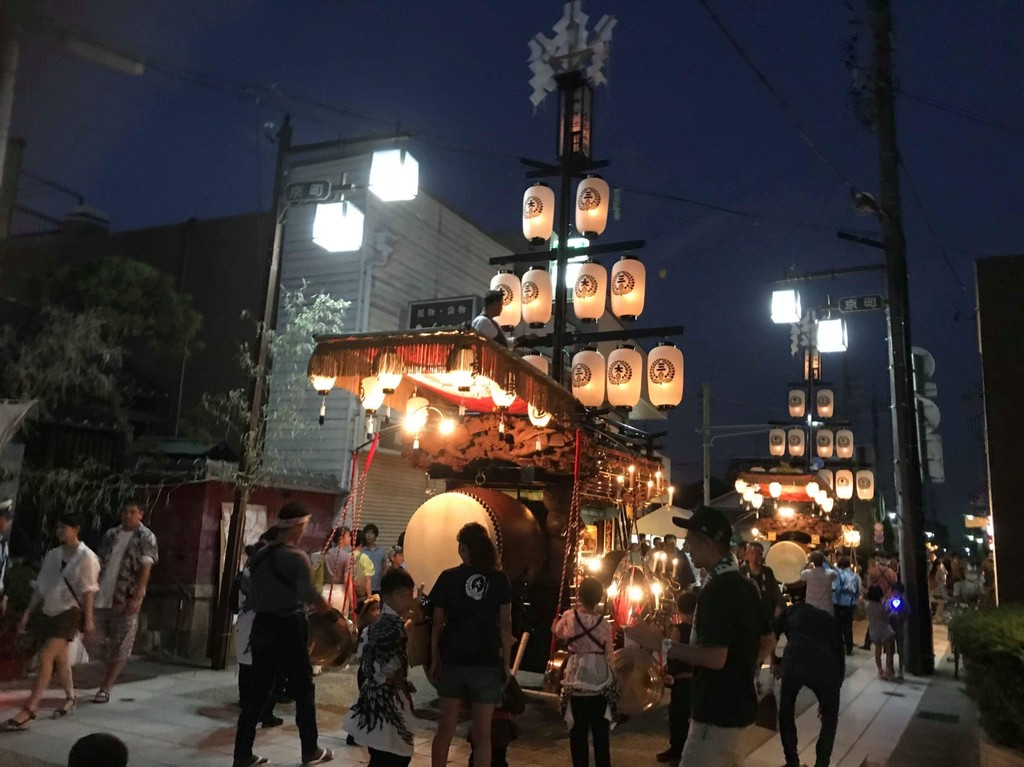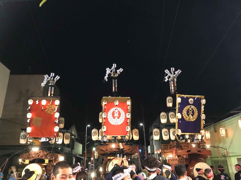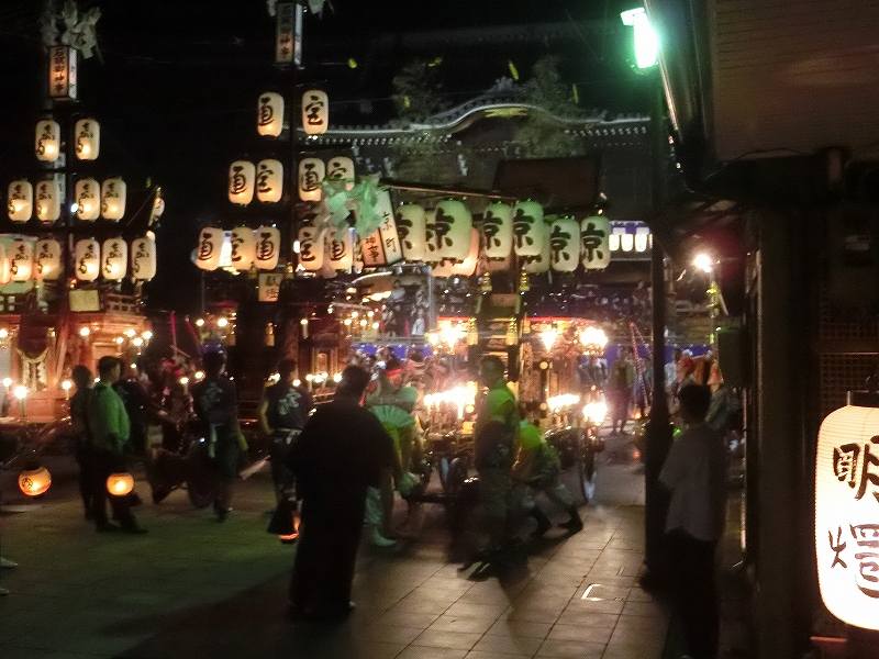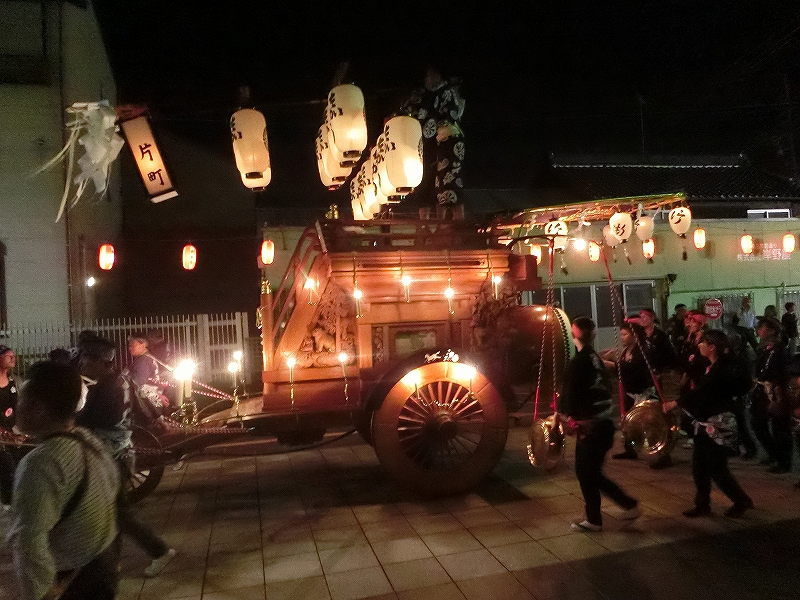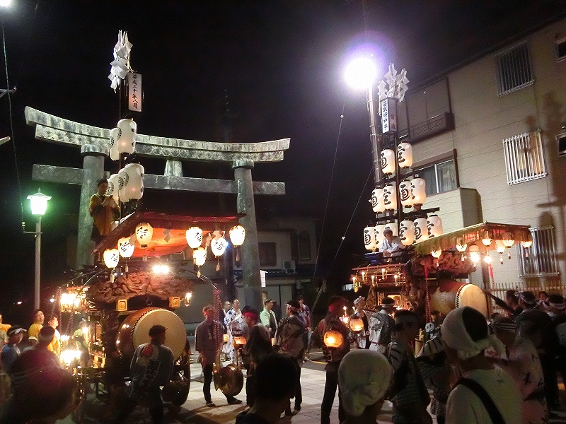 午後9時、八間通りに揃った各組祭車は、八間通りから引き上げ、組内練りに戻ります。
