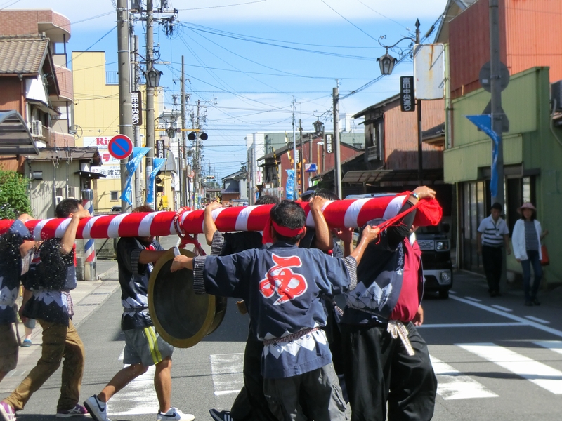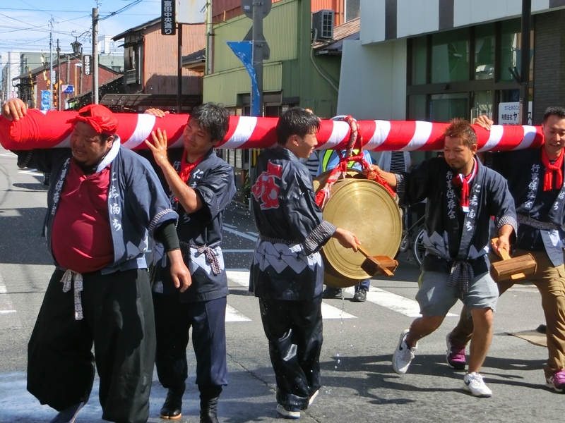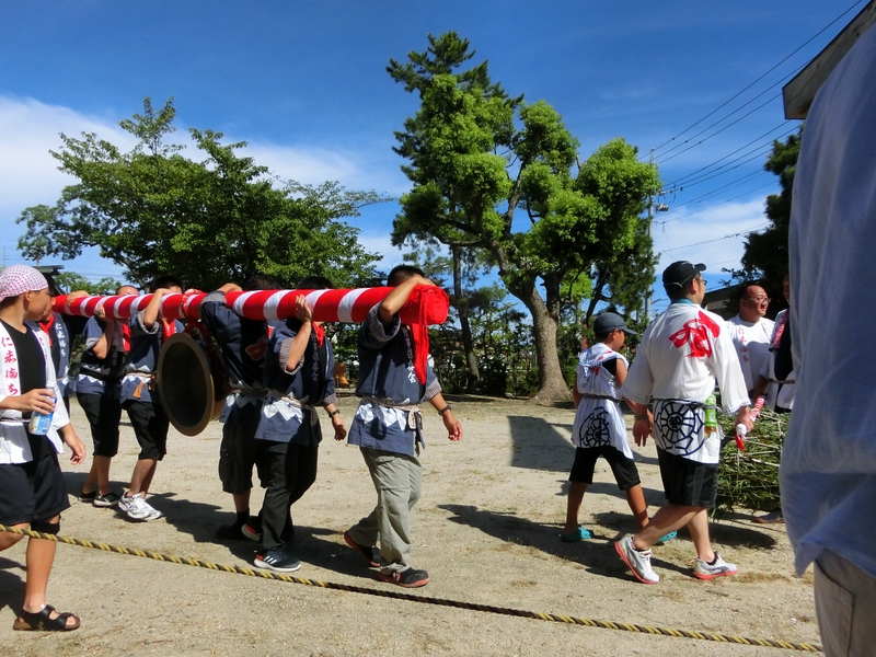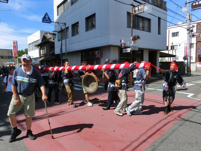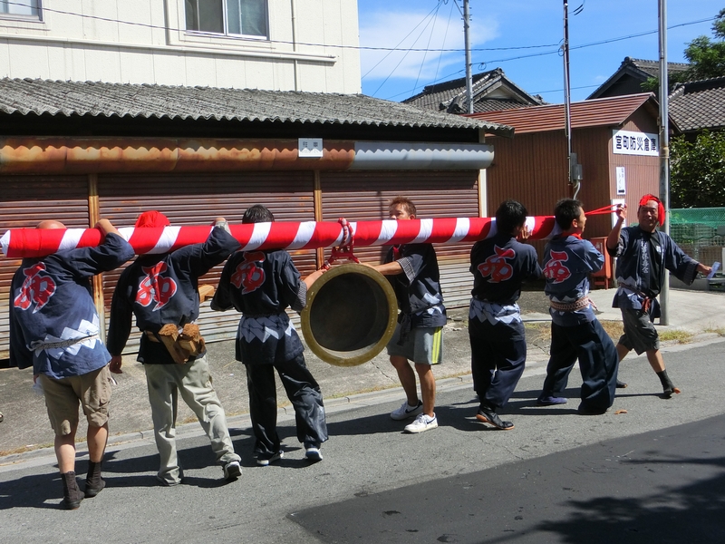 主役は青年と中老で担がれ、囃される大鉦です。