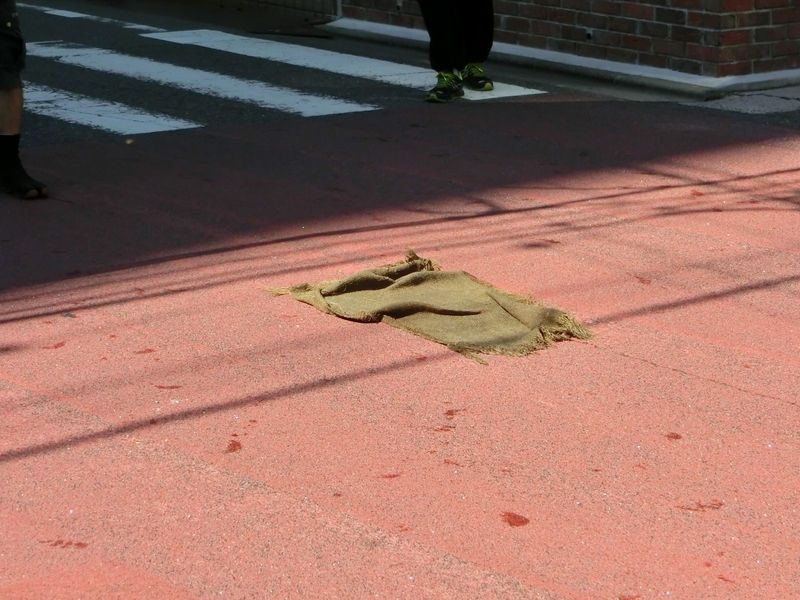 濡れたマンホールで一人が脚を滑らせると、大鉦が転け大事故になるため、麻袋が被せられます。