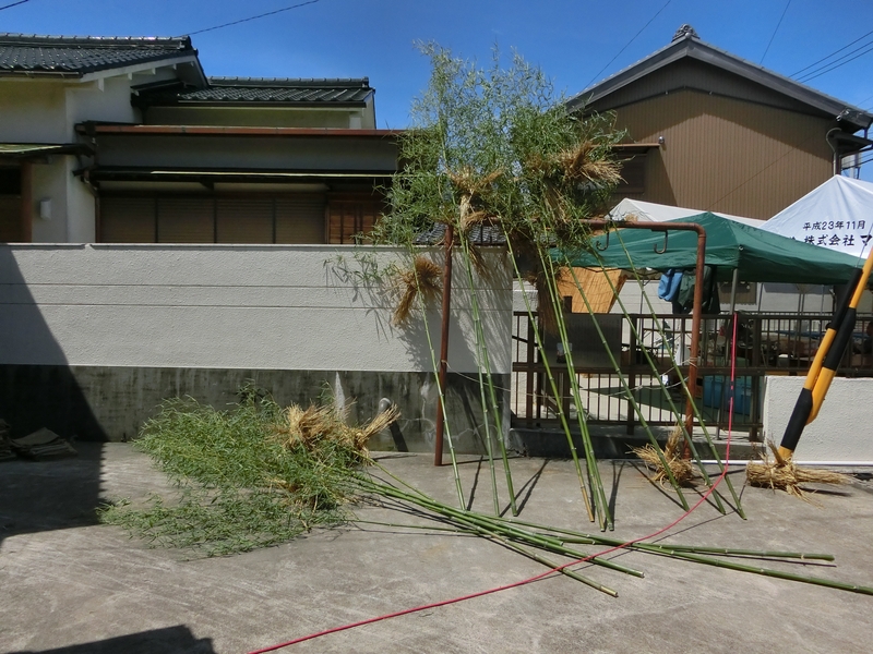 笹竹に人形の松明を吊るします。