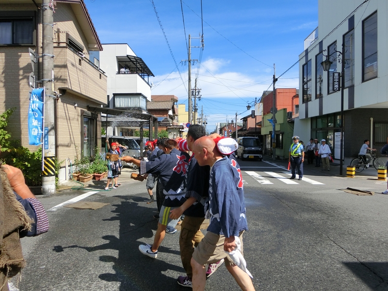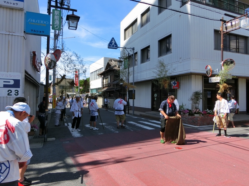 八幡神社跡を出発した行列は町内を練り、中央通りを経て鳥出神社に向かいます。