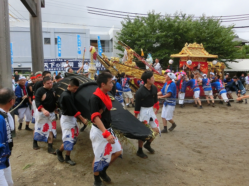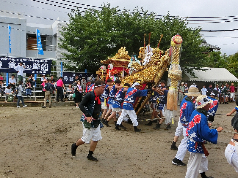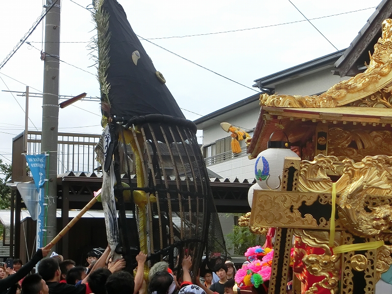 今年初めて、鯨船と石取祭車が曳き揃えるイベントが行われる予定でしたが、午前中の雨で中止に