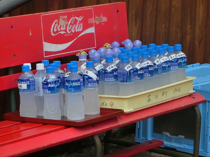 大変暑かったこの日、名前の付いたスポーツドリンクが大量にありました。
