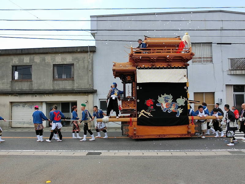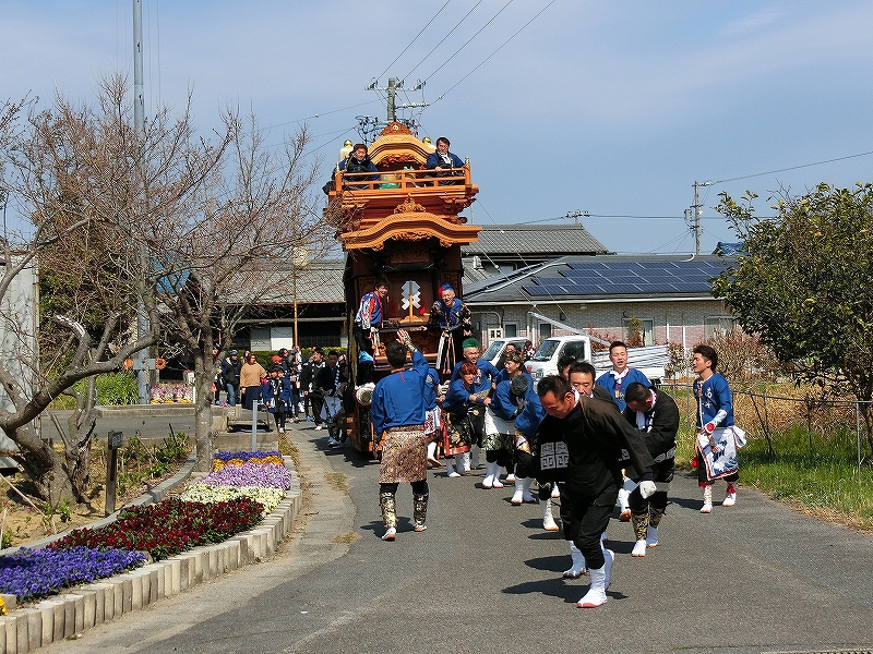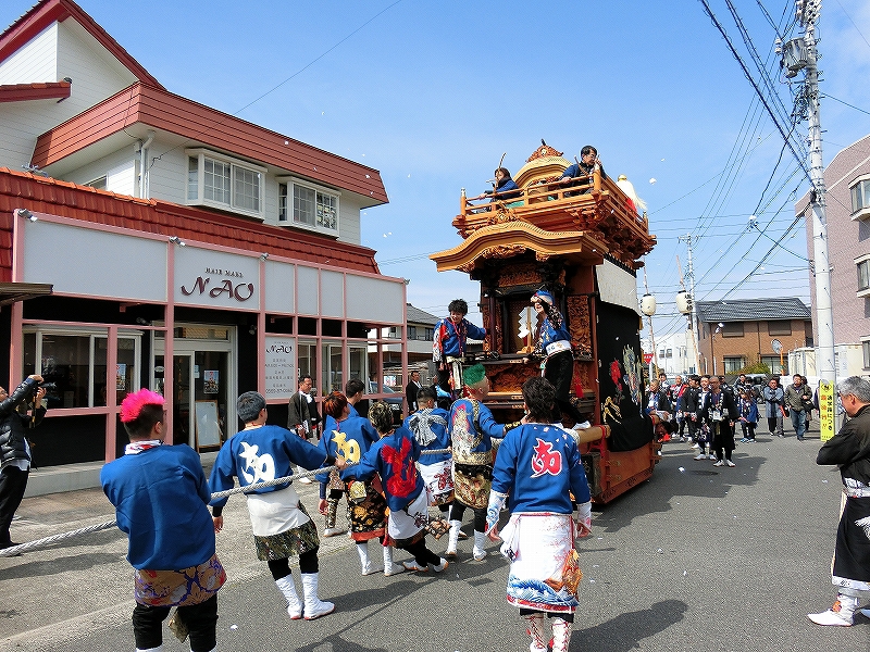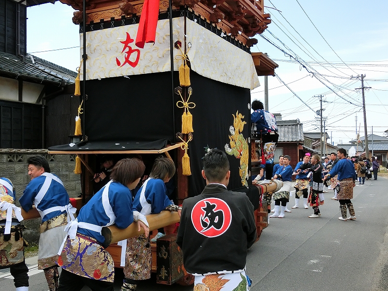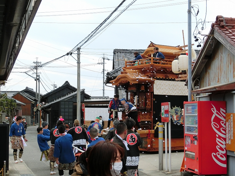山車曳きは休憩となり、囃子は山車を曳き入れない地区に向かいました。