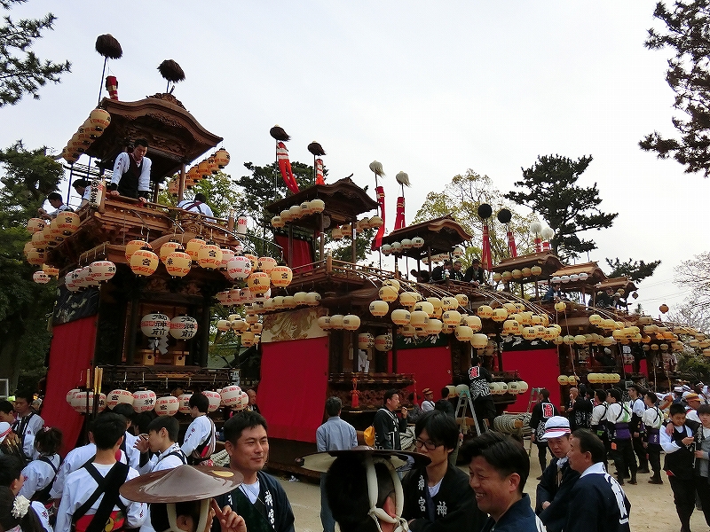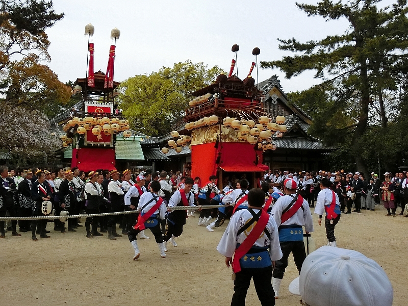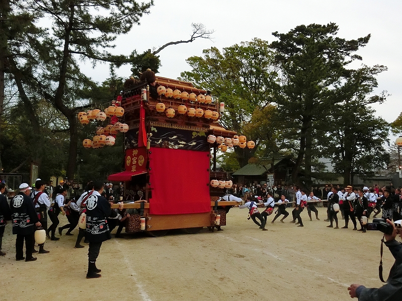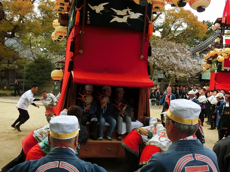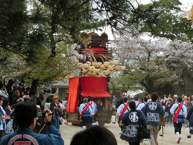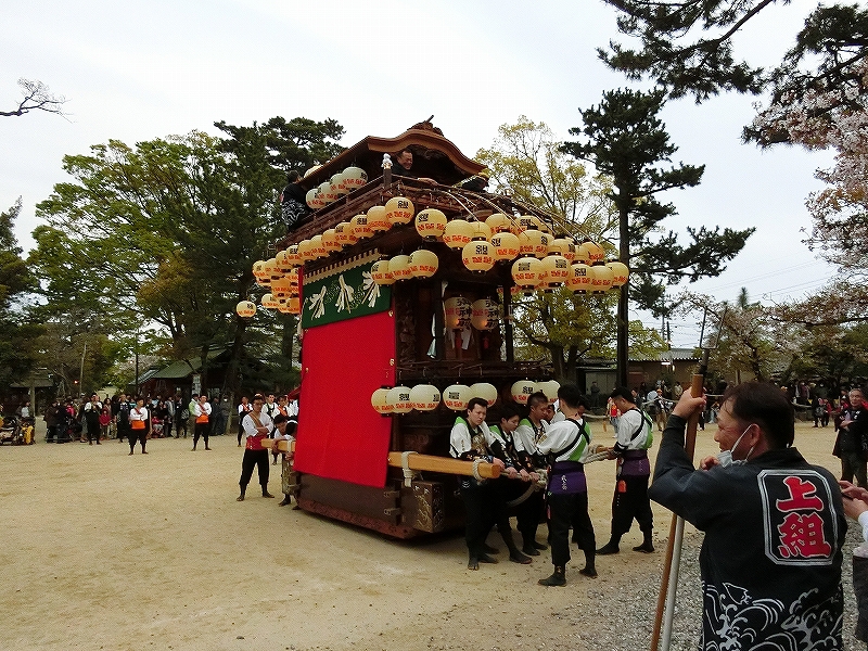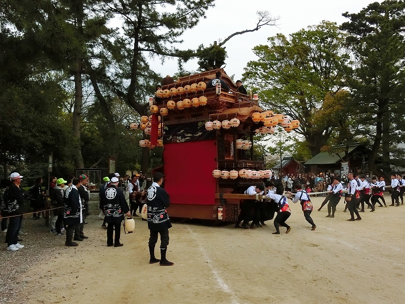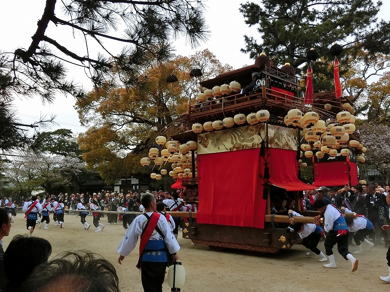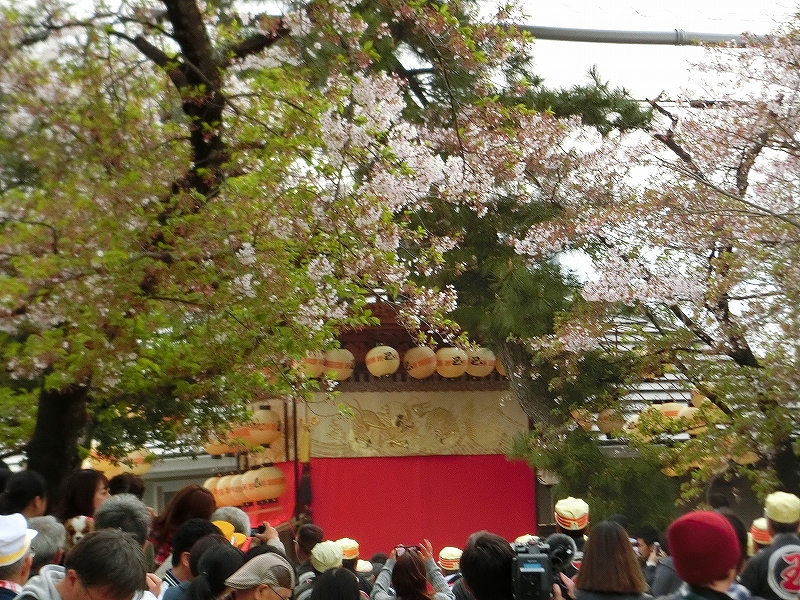 神幸行列の後、7~8分おきに山車が曳き出されます!