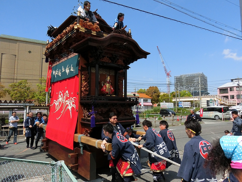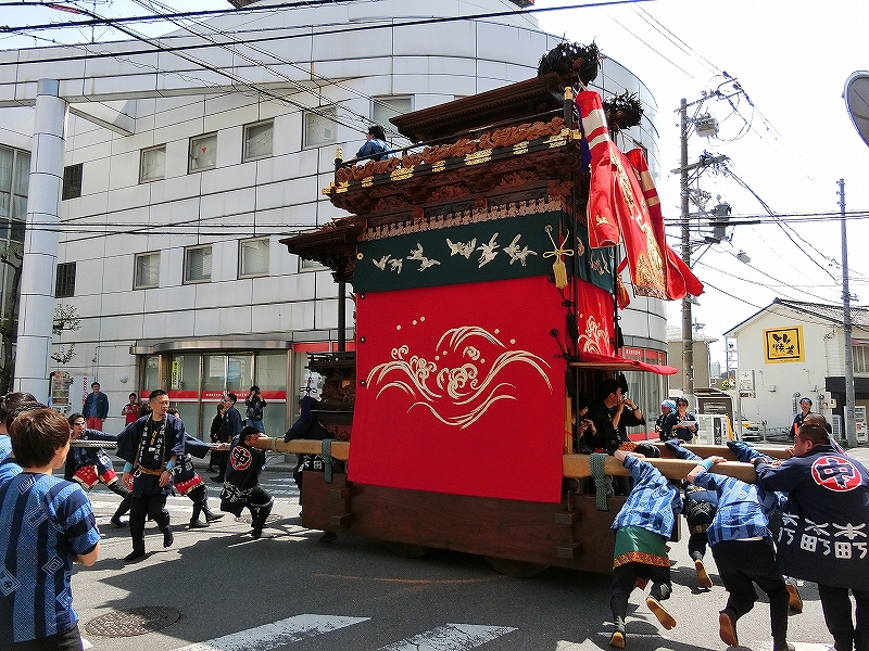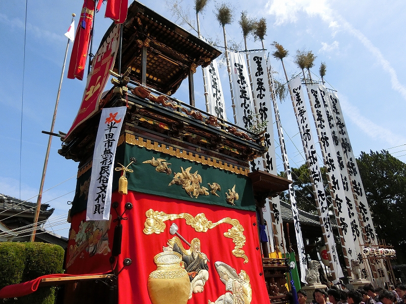 今年、半田市無形民俗文化財に指定されたため、幟が取り付けられていました。